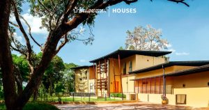บ้านรูปทรงโมเดิร์นมีใต้ถุนสูง หลังคาคล้ายแบบเพิงหมาแหงนเอียงสลับด้านกัน ทำให้บ้านหลังนี้ดูแปลกตาและน่าสนใจ ตั้งอยู่บนเนินสูงซึ่งรับกันได้ดีกับรูปทรงของบ้าน และสามารถมองเห็นวิวได้รอบด้าน