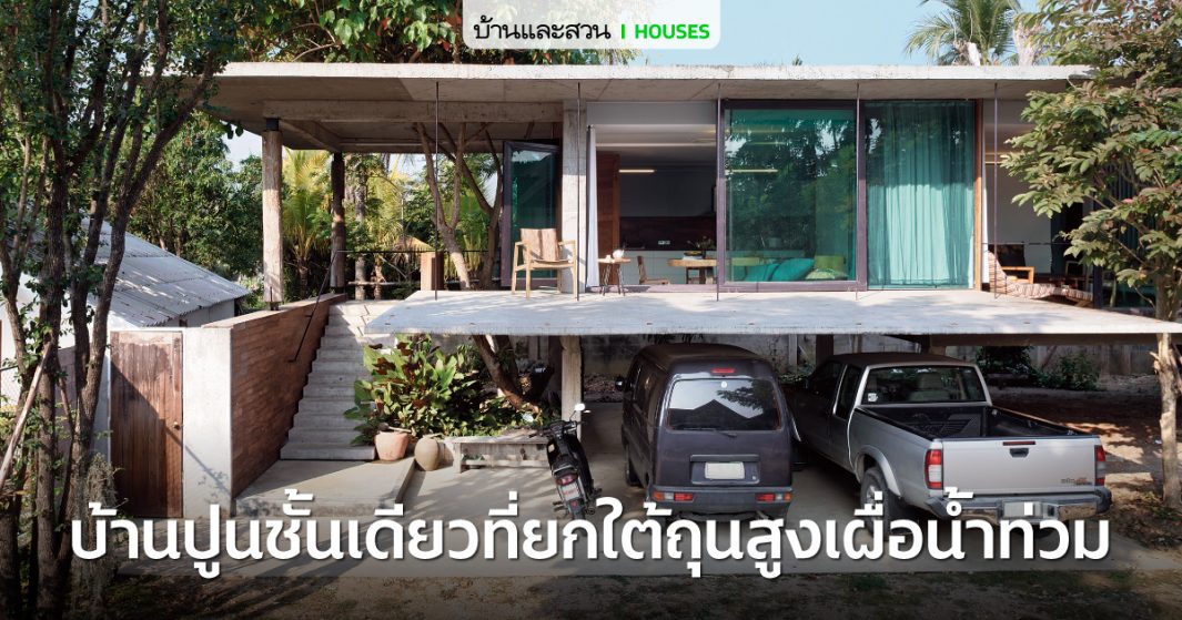 บ้านปูนเปลือย ใต้ถุนสูง ที่รายล้อมด้วยแปลงผัก - บ้านและสวน