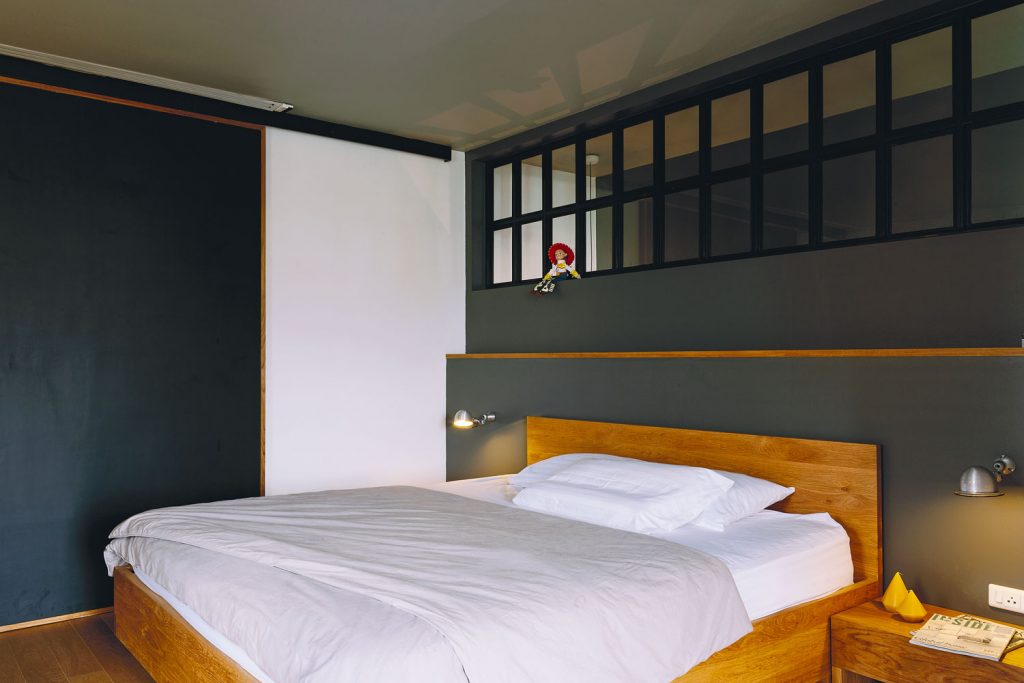 ฟังก์ชันส่วนตัว ชั้นสามของบ้านจะเป็นห้องนอนเป็นการจัดพื้นที่ใช้สอยแบบ Private Area ผนังเหนือหัวนอนกรุกระจกใสเชื่อมต่อกับส่วนที่เป็นช่องเปิดของบันไดหลักแสงสว่างจึงส่องถึงทั่วทั้งห้อง พื้นที่ส่วนตัวของห้องนอนถูกแบ่งออกจากส่วนแต่งตัวด้วยฉากกั้นขนาดใหญ่เป็นบานเลื่อน เปิด – ปิด นอกจากช่วยในเรื่องการใช้พื้นที่ได้อย่างยืดหยุ่น และระบายอากาศแล้วยังช่วยประหยัดค่าไฟด้วยเพราะไม่ต้องสูญเสียแอร์ไปให้ส่วนที่ไม่จำเป็นต้องปรับอากาศตลอด