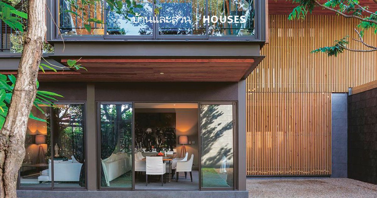 บ้านไม้โมเดิร์น ที่ใช้ครีบหินแบ่งสเปซและกั้นแดด