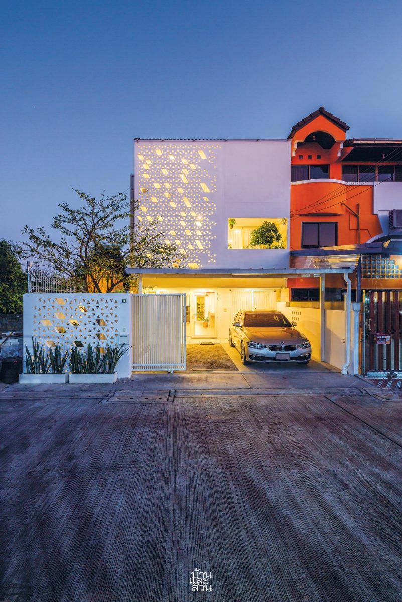 รีโนเวตบ้านเก่า 30 ปีที่อยู่แล้วรู้สึกอึดอัดคับแคบเกินไปให้กลายเป็นบ้านหลังใหม่ ด้วยการเปลี่ยนแปลนบ้านใหม่ทั้งหมด พร้อมขยายพื้นที่ใช้สอยภายในให้กว้างขึ้น และยังเชื่อมต่อมุมมองภายในออกสู่ธรรมชาติสีเขียวภายนอกได้อย่างสบายตา รวมไปถึงการฟาซาดและแผ่นครีบบริเวณหน้าบ้านพื่อช่วยป้องกันแนวแดดที่มาทางทิศตะวันตกเฉียงเหนือ สร้างขึ้นด้วยโครงเหล็กเพื่อไม่เพิ่มภาระการรับน้ำหนักของโครงสร้าง เติมด้วยบล็อกช่องลมที่วางแพตเพิร์นใหม่ให้ดูสวยงามและใช้ระแนงไม้เทียมมาช่วยเพิ่มมุมมองที่อบอุ่นของบ้าน >> อ่านต่อ