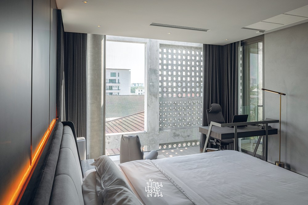 บ้านปูนทรงกล่อง ที่มีการออกแบบ “ที่ว่าง” อย่างน่าสนใจ สร้างการเชื่อมโยงในทุกมิติอย่างรอบด้าน เป็นทั้งช่องลมที่อากาศไหลผ่านสร้างความสบาย เปิดมุมมองให้ครอบครัวมีปฏิสัมพันธ์อย่างอบอุ่น แต่ก็เว้นระยะให้เป็นส่วนตัวรู้สึกปลอดภัย และเผยความงามของสัจจะวัสดุเมื่อแสงกระทบผ่านมวลอากาศและแพตเทิร์นช่องลม >> อ่านต่อ
