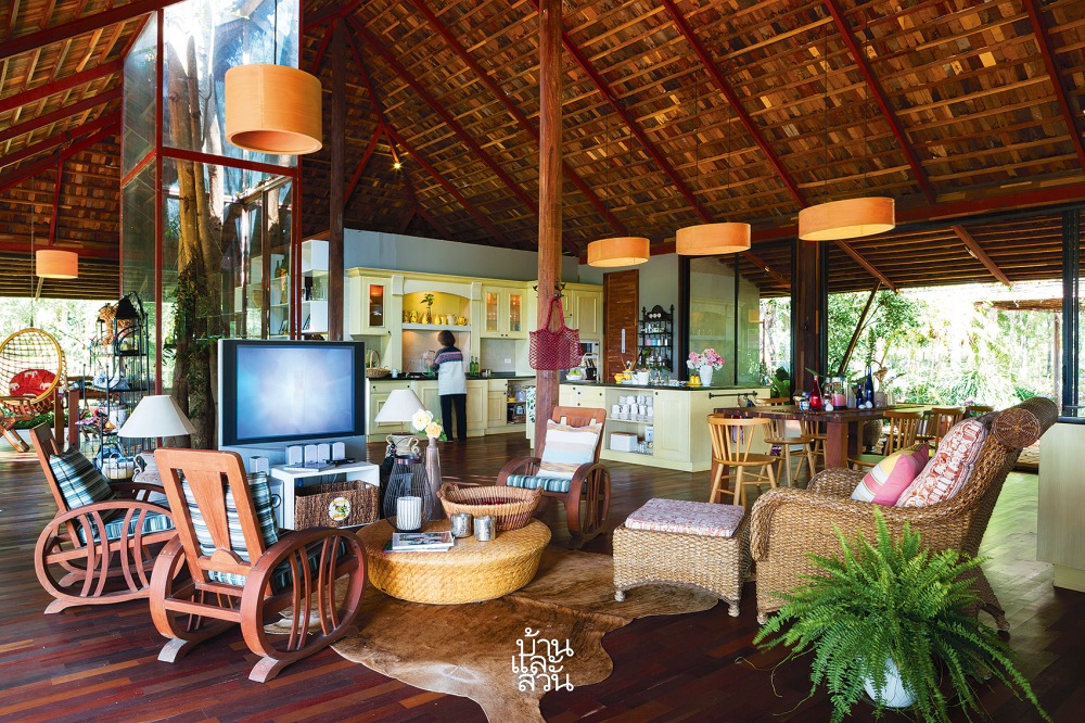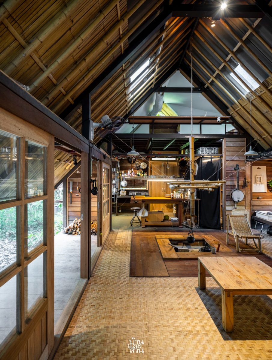 บ้านหลังนี้สร้างจากไม้เกือบทั้งหมด โดยมีการใช้โครงสร้างเหล็กเสริมเพื่อความแข็งแรงคงทนในระยะยาว ภายในจัดวางพื้นที่ใช้สอยแบบเปิดโล่งถึงกันหมด มีเฉพาะห้องนอนเท่านั้นที่ออกแบบให้มีชั้นวางของดีไซน์ทันสมัยมากั้นห้องและเพิ่มความเป็นส่วนตัวในการใช้งาน ไฮไลต์ของบ้านยังอยู่ที่ความพยายามเก็บรักษาต้นไม้ในพื้นที่เอาไว้ให้ได้มากที่สุด โดยเฉพาะต้นกัลปพฤกษ์ต้นใหญ่กลางบ้านที่มีการออกแบบเจาะช่องหลังคาเพื่อให้ต้นกัลปพฤกษ์สามารถเติบโตต่อไปได้พร้อมๆ กับบ้านที่มีอยู่ >> อ่านต่อ