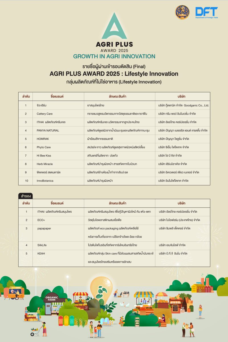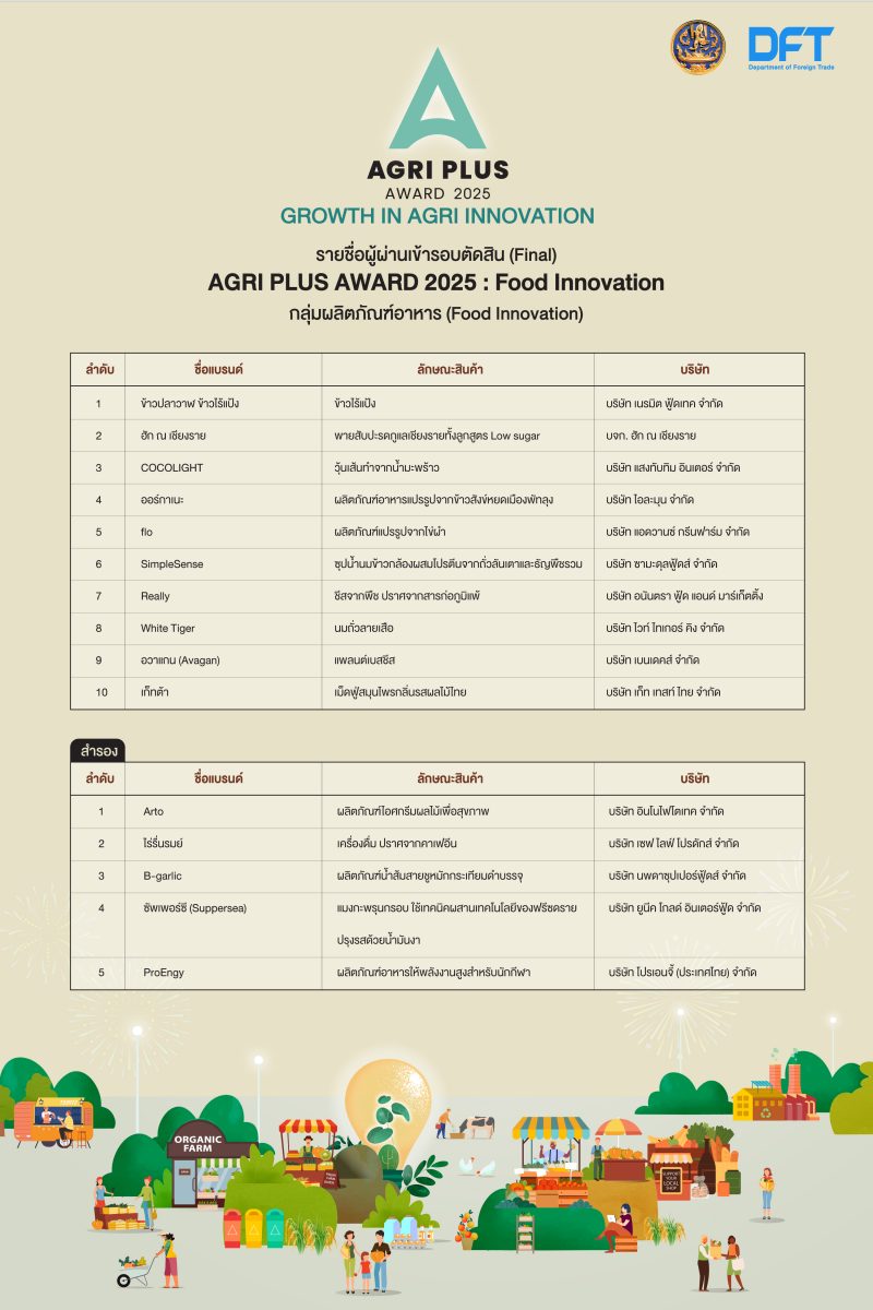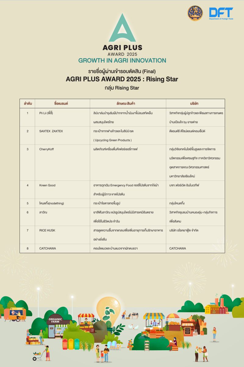 ขอแสดงความยินดีกับผู้ประกอบการที่ผ่านเข้ารอบการตัดสิน โครงการ Agri Plus Award 2025