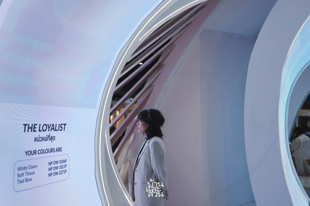 เริ่มต้นจากแนวคิด “The Future City” ของ Nippon Paint เชื่อมโยงความรู้สึกและประสบการณ์ของผู้คนให้เป็นส่วนหนึ่งของพาวิเลียน ในแต่ละโซนของพาวิเลียนมอบประสบการณ์ล้ำสมัยและเปิดโอกาสให้ผู้ชมได้สัมผัสทุกมุมมองใหม่เพื่อต่อยอดไอเดียอย่างไร้ขีดจำกัด โดยมีพื้นที่ Immersive รองรับการปฏิสัมพันธ์ ชวนผู้ชมร่วมสร้างเมืองแห่งอนาคต และมีพื้นที่ Interactive จากเทคโนโลยี Brainwave ถอดรหัสคลื่นสมองสู่สีสันเฉพาะตัว การออกแบบแรงบันดาลใจรูปลักษณ์จากใบพัดสี (Fan Deck) นำมาสร้างฟอร์ม โดยนำวิธีการดึงใบพัดสีของนักออกแบบมาประยุกต์ เกิดเป็นโครงสร้างที่ประกอบซ้อนกันระหว่างส่วนทึบและส่วนโปร่ง ออกแบบให้ตอบโจทย์ทุกกิจกรรมในพื้นที่ และ pbm ยังคำนึงถึงความยั่งยืน ด้วยการวางแผนนำส่วนใบพัดไม้ ตัดเป็นวัสดุตัวอย่างให้กับดีไซเนอร์ได้นำไปใช้งานต่อแบบไม่เหลือเศษ