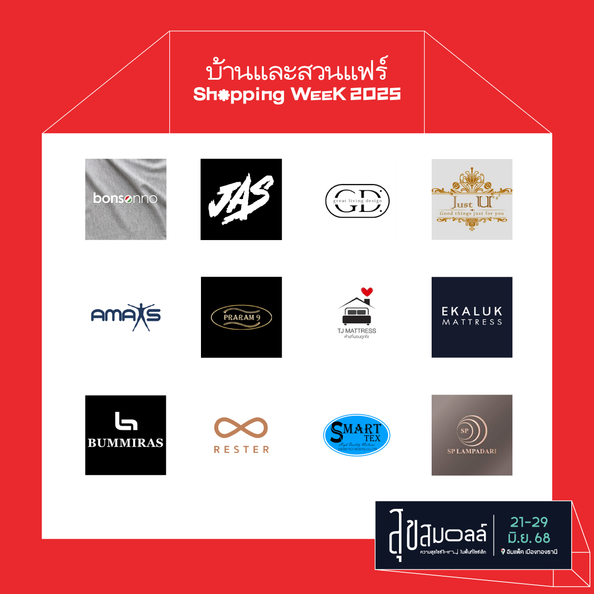 กลับมาอีกครั้งกับ งานบ้านและสวนแฟร์ Shopping Week 2025 วันที่ 21 – 29 มิถุนายน 2568 ณ อิมแพ็ค เมืองทองธานี ชวนคนรักบ้านมาช็อปสนุกความสุขบิ๊กไซซ์ กับเฟอร์นิเจอร์ ของแต่งบ้าน สินค้าไลฟ์สไตล์ เครื่องใช้ไฟฟ้า ต้นไม้และของแต่งสวน โดยจัดในธีม “สุขสมอลล์ ความสุขไซซ์ใหญ่ในพื้นที่ไซซ์เล็ก” ที่เราสามารถออกแบบบ้านให้เป็นพื้นที่แห่งความสุขได้ โดยไม่จำกัดกับขนาดพื้นที่