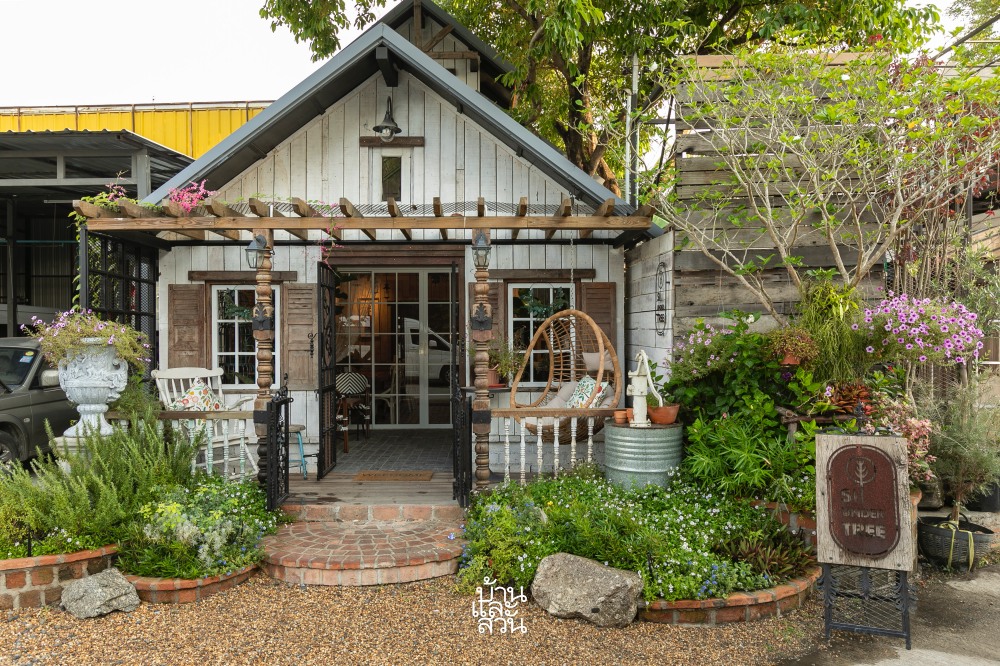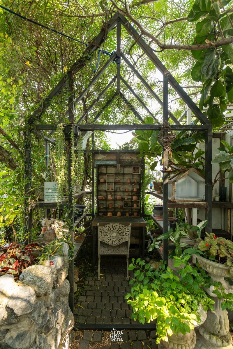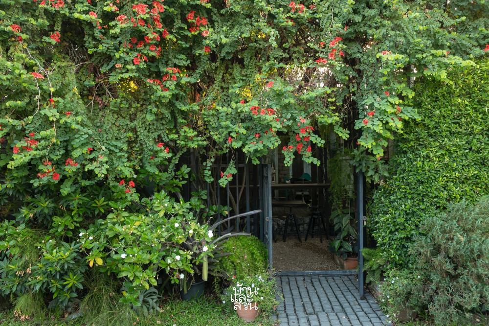 นอกจากที่นี่จะเป็นคาเฟ่ที่ให้บริการอาหารสไตล์โฮมเมดและเครื่องดื่มหลากหลายแล้ว ยังเป็นเสมือน Mock Up Room แสดงผลงานจัดสวนของ “สวนคุณพ่อ” ที่มีคุณอั๋นเป็นเจ้าของและออกแบบจัดสวนด้วยตัวเอง จึงไม่น่าแปลกใจที่เราจะเห็นมุมสวนหลากสไตล์รวมกันอยู่ในพื้นที่นี้ ทั้งสวนโมเดิร์น สวนทรอปิคัล สวนอังกฤษ สวนญี่ปุ่น ลำธารที่ใช้ทั้งหินฟองน้ำและหินแกรนิต มีอ่างน้ำพุแบบยุโรป งานโครงสร้างซุ้มแบบโมเดิร์น ไปจนถึงตะเกียงหินแบบญี่ปุ่น ที่นี่มีทุกอย่างครบแต่ในแบบย่อส่วนและร่วมอยู่ด้วยกันได้อย่างไม่น่าเชื่อ