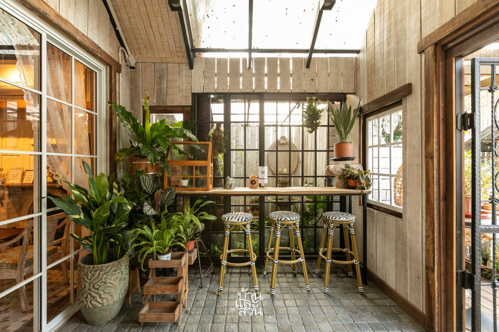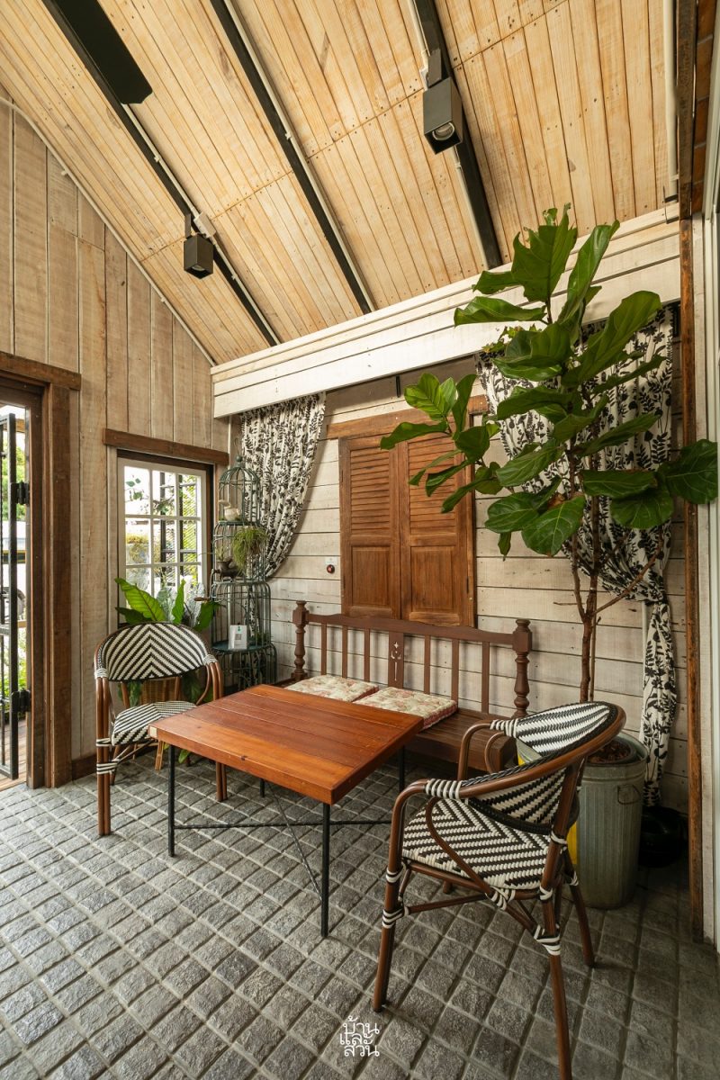 บรรยากาศของร้านร่มรื่นด้วยต้นไม้ใหญ่ทั้งล่ำซำ สน จำปี สนเกรวิลเลีย ซิลเวอร์โอ๊ก กระดุมไม้ใบเงิน ซึ่งล้วนแต่เป็นต้นไม้ที่ใช้ในการจัดสวน แต่แปลกตรงที่เป็นต้นไม้ที่เหมาะสำหรับสวนต่างสไตล์กันแต่ถูกนำมารวมอยู่ด้วยกัน รวมไปถึงภาพรวมของสวนที่ดูจะเป็นสวนสไตล์คอตเทจ แต่ก็มีอะไรที่ดูต่างออกไปจากสวนคอตเทจทั่วไปที่เคยเห็น ไม่ว่าจะเป็นการใช้กรอบหน้าต่าง ลูกกรงบันได โต๊ะ เก้าอี้ที่ทำจากไม้เก่า ไม้พุ่มที่มีทั้งไม้ดอกและไม้ใบ ไม้เลื้อย ไปจนถึงไม้กระถางและของตกแต่งกระจุกกระจิกที่วางอยู่ตามมุมต่าง ๆ