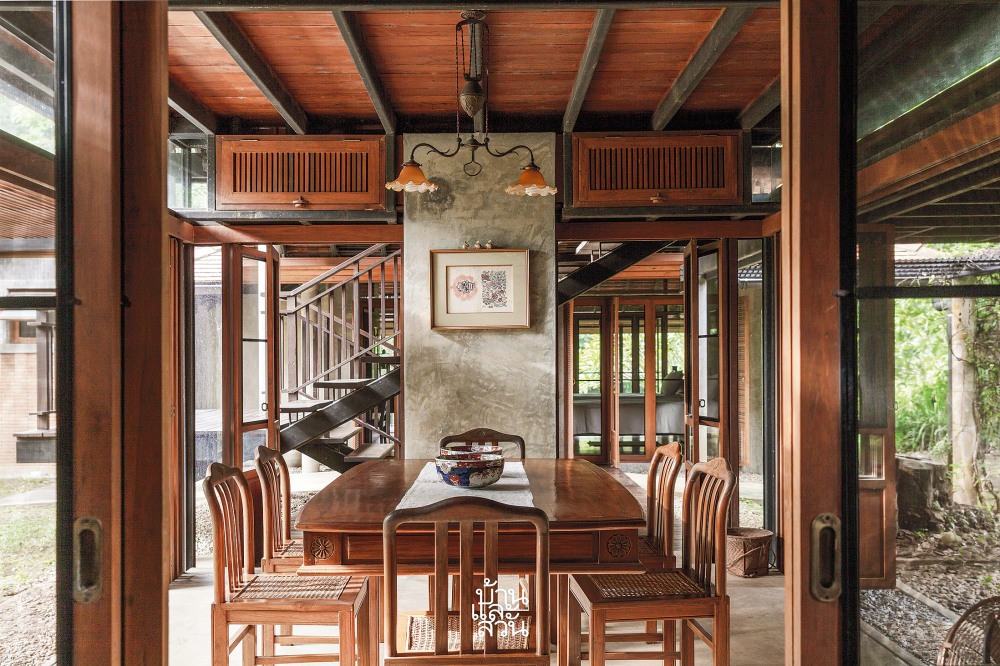 บ้านพื้นถิ่นไทยที่ออกแบบมาให้มีช่องเปิดรับแสงในทิศทางที่เหมาะสม มีช่องทางไหลเวียนของลมเพื่อระบายความร้อน ชายคายื่นยาวกันแดดกันฝน และเพิ่มมุมมองที่อบอุ่นนุ่มนวลด้วยงานไม้เก่า >> อ่านต่อ