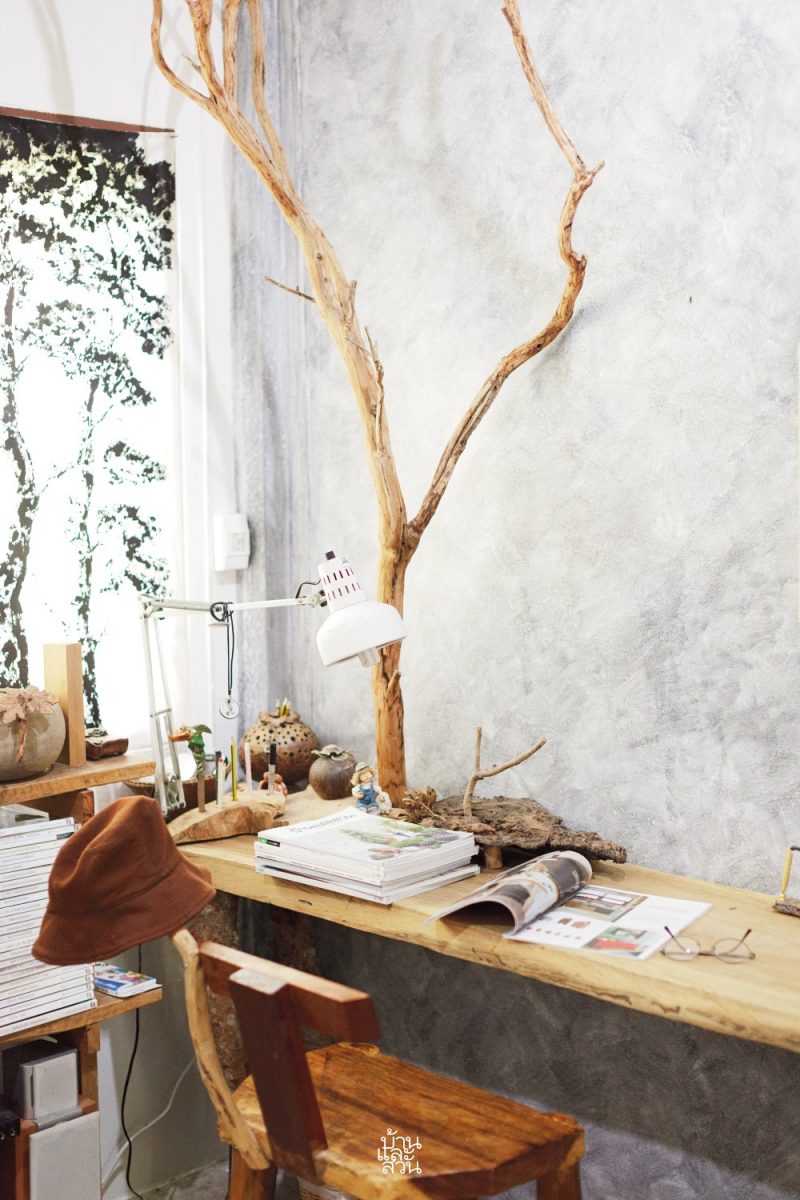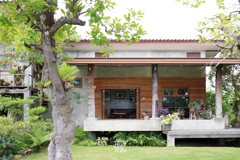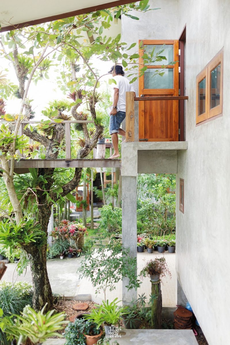 บ้านปูนเปลือยชั้นเดียวของช่างไม้ ที่ปลูกแทรกไปกับพืชพรรณรอบบ้านอย่างลงตัว