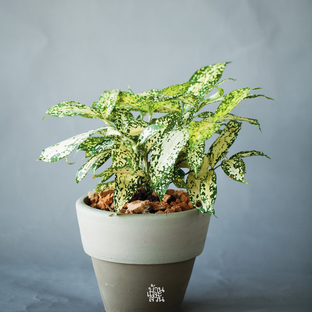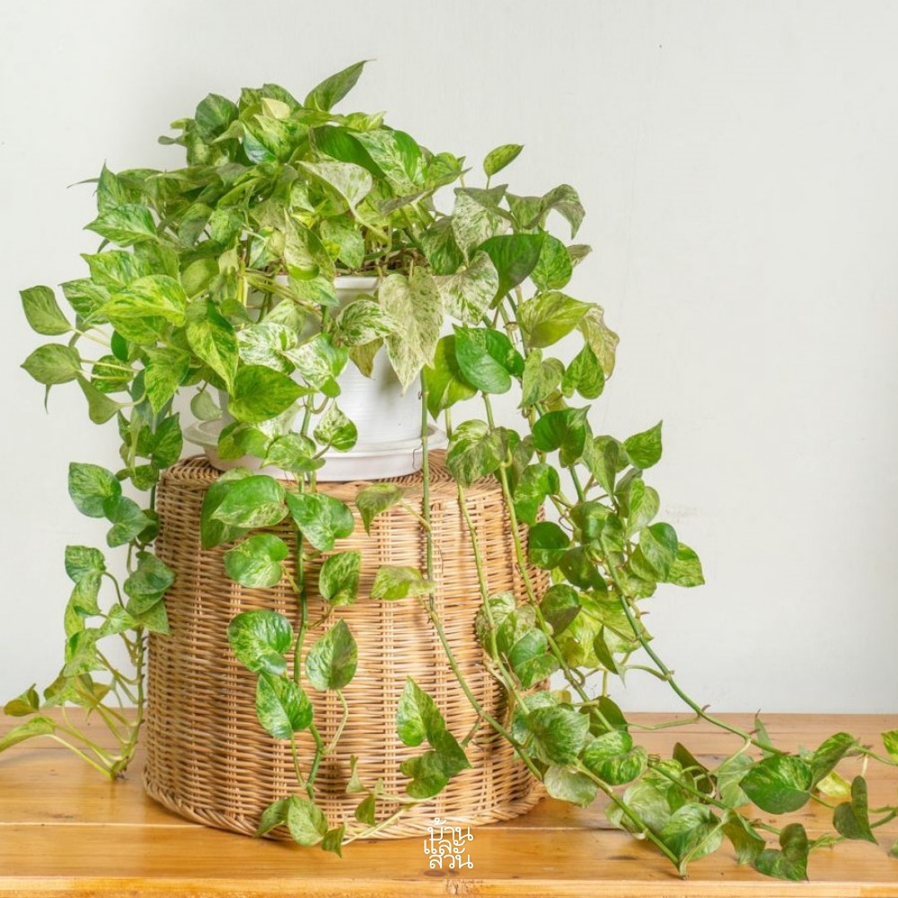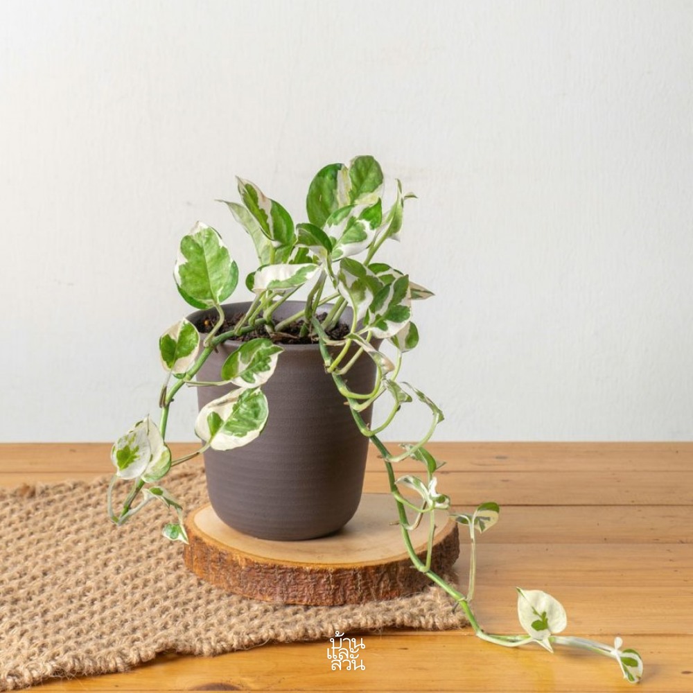 Epipremnum aureum “Pearls And Jade” พลูงาช้าง พลูตระกูลอิพิอีกต้น ที่หน้าตาน่ารัก มีสีเขียวแกมขาว เหมือนเอาสีมาระบายที่ใบ ลักษณะใบจะเล็กกว่าพลูทั่วไป โตค่อนข้างช้า ไม่ชอบแดดแรง เลี้ยงในบ้านได้ รดน้ำ 2-3 วันครั้ง รากจะเดินช้ากว่าพลูทั่วไป แต่ถ้าเลื้อยแล้วจะน่ารักมาก ๆ
