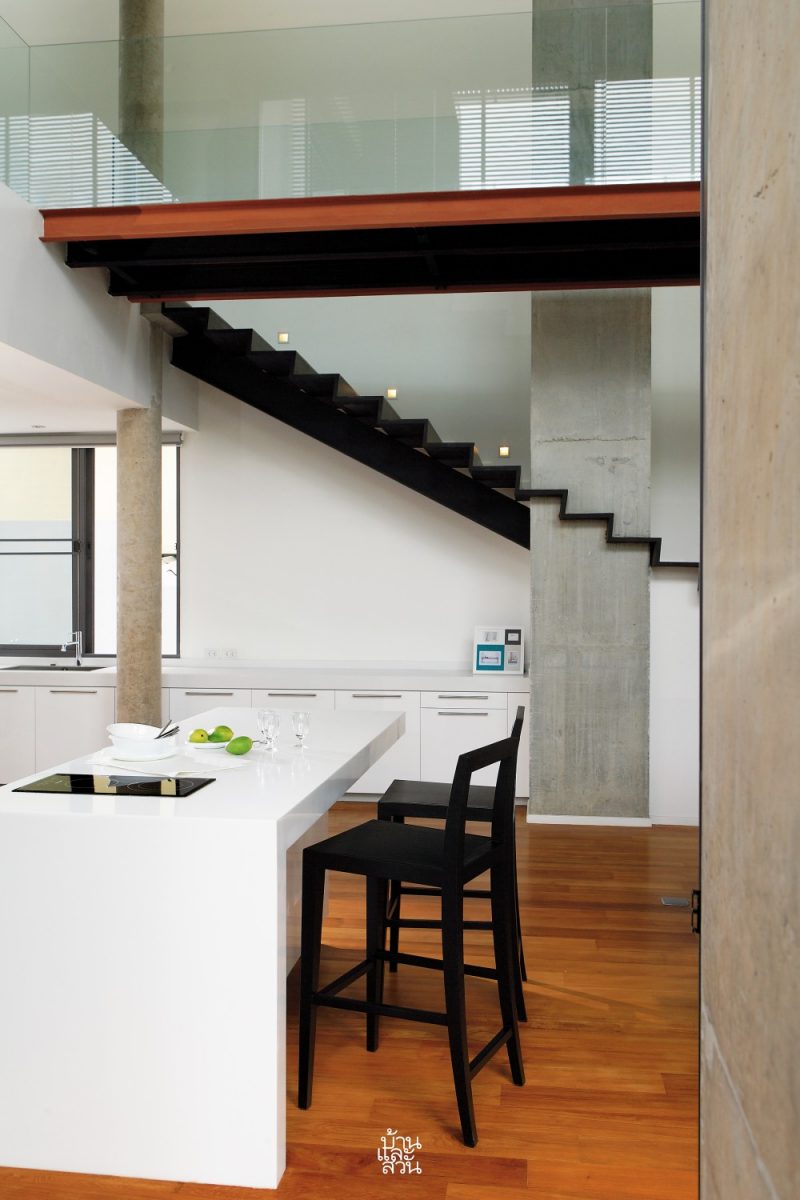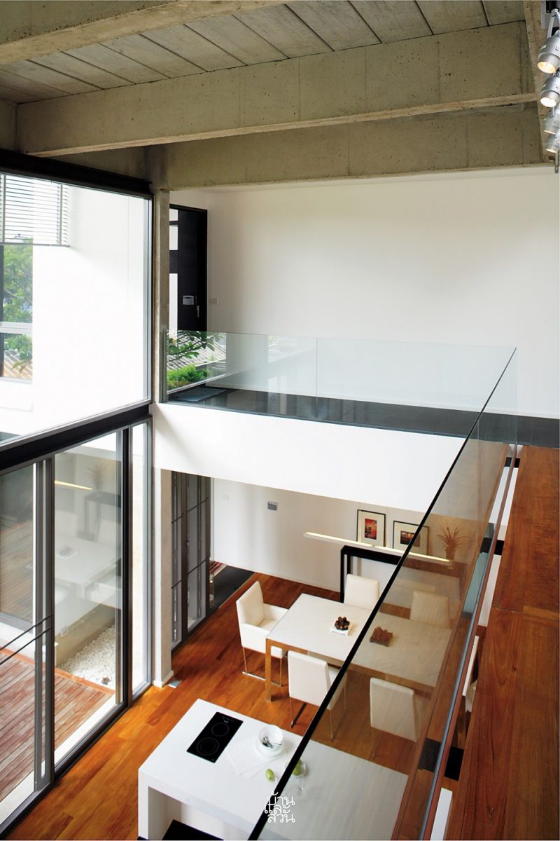 “การออกแบบบ้านหลังนี้เน้นให้อยู่สบาย เหมาะสมกับสภาพแวดล้อมและดินฟ้าอากาศของเมืองร้อน แต่ก็ต้องตอบสนองความต้องการของเจ้าของบ้านด้วย ที่ดินของบ้านมีขนาด 97 ตารางวา ลักษณะเป็นรูปสี่เหลี่ยมผืนผ้า การวางตำแหน่งของบ้านจึงค่อนข้างยากพื้นที่ใช้งานส่วนใหญ่จึงออกแบบให้เปิดโล่ง ไม่มีการกั้นผนังมากมายเกินความจำเป็น”