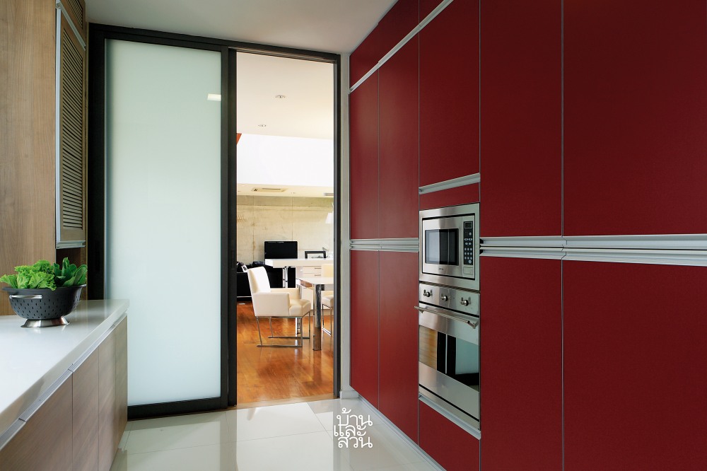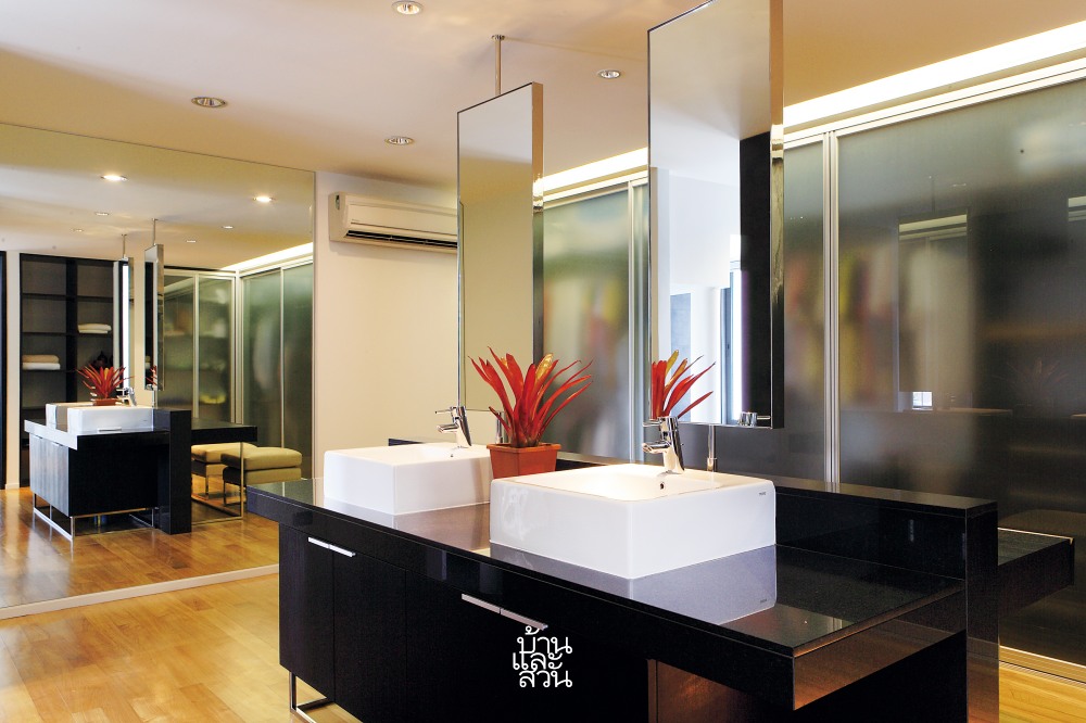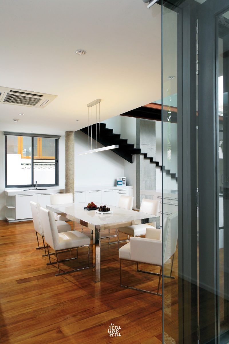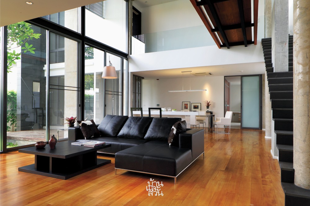 บ้านโมเดิร์นกลิ่นอายไทยประยุกต์ ที่นำแนวคิดของบ้านเรือนไทยมาผสมผสานกับบ้านสไตล์โมเดิร์นได้อย่างกลมกลืน เช่น การยกพื้นสูงเพื่อป้องกันการเสื่อมสภาพของวัสดุปูพื้นอันเนื่องมาจากความชื้นจากพื้นดิน การออกแบบให้ชายคายื่นยาวเพื่อให้เกิดร่มเงาแก่ตัวบ้าน
