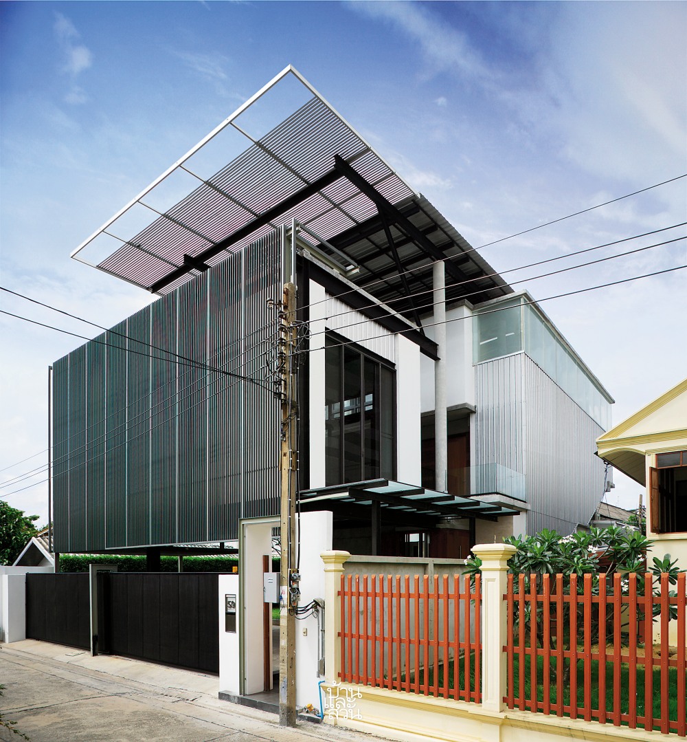 บ้านโมเดิร์นกลิ่นอายไทยประยุกต์ หลังนี้ ไม่เพียงมีรูปแบบและหน้าตาที่ทันสมัย แต่ยังแก้ปัญหาเรื่องความร้อนและความชื้นของเมืองไทยได้ดี ด้วยลักษณะที่เป็นเหลี่ยมๆ เป็นชั้นๆ มีกลิ่นอายแบบไทยๆผสมอยู่ เราจึงขอเรียกบ้านหลังนี้ว่า “บ้านขนมชั้น” ก็แล้วกัน