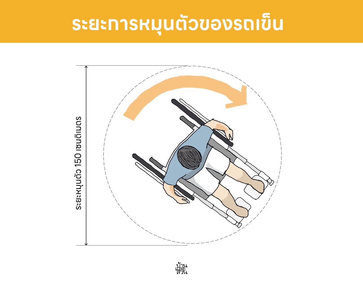 - ควรมีระยะอย่างน้อย 150 เซนติเมตร สำหรับการหมุนตัวของรถเข็น