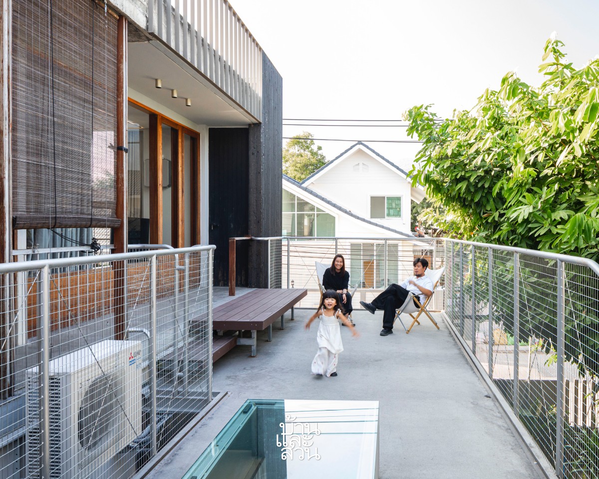 แม้ว่าการแยกบ้านเพื่อไปสร้างครอบครัวใหม่ของตัวเองนั้นอาจให้ความรู้สึกอิสระค่อนข้างมาก แต่ด้วยวัฒนธรรมของครอบครัวไทยก็ทำให้หลายคนเลือกที่จะอยู่ใกล้ชิดกับคนรุ่นปู่ย่าหรือตายายที่ได้ทั้งความอบอุ่นใจและการพึ่งพาอาศัยกันและกันระหว่างคนสามรุ่นมากกว่า เช่นเดียวกับ คุณสีฟ้า ศรชัยยืน และ คุณโน้ต-วรรัตน์ รัตนตรัย คู่รักนักออกแบบจาก Studio Sifah ที่ก่อนนี้ก็ได้แยกบ้านไปเพื่อเปิดบริษัทของตัวเอง แต่เมื่อถึงวันที่ต้องการสร้างครอบครัว ทั้งคู่ได้ตัดสินใจกลับมาอยู่ในรอบรั้วเดียวกับคุณแม่ที่เกษียณแล้วอีกครั้ง ในรูปแบบ บ้านสถาปนิก หรือโฮมออฟฟิศที่อยู่กับครอบครัว