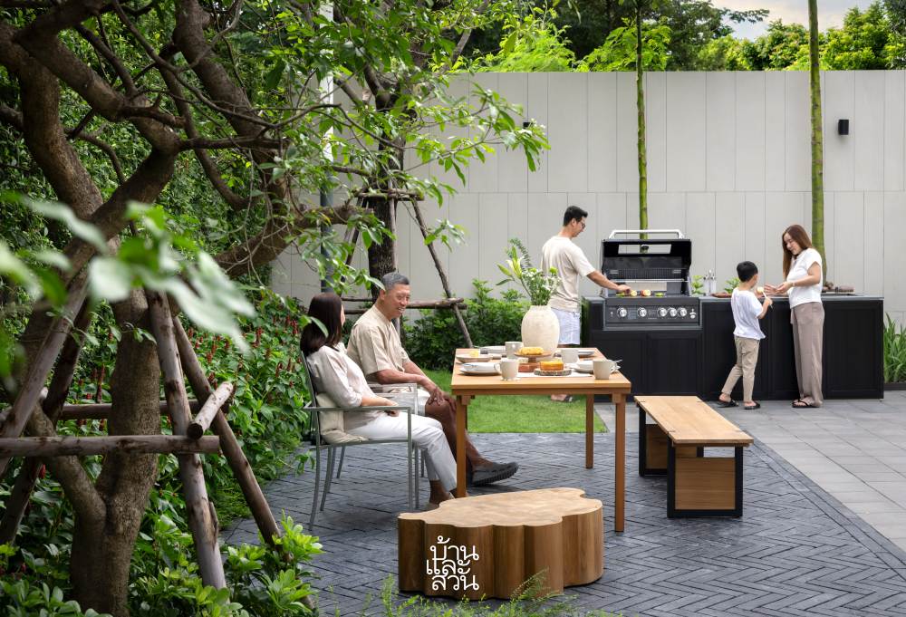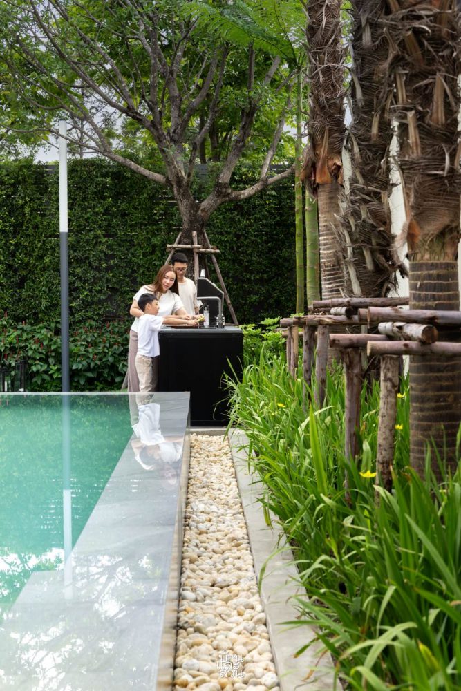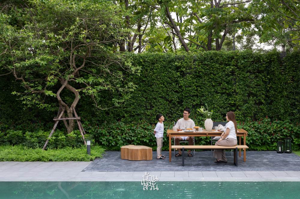พื้นที่สีเขียวของบ้านหลังนี้ จึงไม่ได้เป็นแค่พื้นที่ภายนอก แต่กลายเป็นส่วนหนึ่งของชีวิตประจำวัน ที่เชื่อมโยงกับการใช้เวลาร่วมกันของสมาชิกในครอบครัว และตอบโจทย์ความต้องการด้านความรู้สึกได้อย่างลึกซึ้ง ราวกับได้ไปเที่ยวพักผ่อนตามรีสอร์ต โดยไม่ต้องออกเดินทางไปไหนไกล