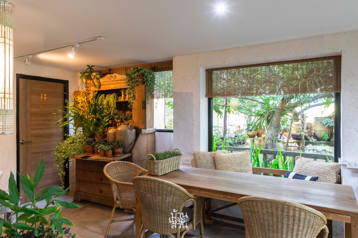 บ้านหลังนี้ซ่อนตัวอยู่ในซอยลึกของอำเภอสันกำแพง เคยรกครึ้มดุจ “ป่าโข่” ตามคำเรียกของคนเหนือ เริ่มต้นจากการจัดระเบียบพื้นที่โดยถางหญ้าและตัดแต่งต้นไม้ เพื่อให้หลานสามารถวิ่งเล่นได้อย่างปลอดภัย หลองข้าวเก่าที่ถูกปล่อยไว้นานก็ถึงเวลาต้องปรับปรุงใหม่ ทั้งเสริมโครงสร้างด้วยเสาเหล็ก และขยายพื้นที่ร้านเพิ่มขึ้นอีกราว 100 ตารางเมตร เพื่อรองรับบทบาทใหม่ในฐานะคาเฟ่ แรงบันดาลใจอีกอย่างคือการที่คุณเติมเป็นนักสะสมของตกแต่งจากการเดินทางไปต่างประเทศ จึงเปลี่ยนพื้นที่แห่งนี้ให้กลายเป็นร้านที่ผู้มาเยือนได้ร่วมสัมผัสความงามในแบบที่ตนเองรักโดยตั้งใจจัดวางของเหล่านั้นไว้ทั่วบ้าน เมื่อพี่สาวกับพี่เขยเกษียณอายุพอดี คุณเติมจึงชวนให้มาช่วยกันทำร้าน โดยเชื่อมโยงกับสิ่งที่ทั้งสองถนัด พี่สาวมีฝีมือในการทำอาหาร ส่วนพี่เขยเคยเป็นนักพัฒนาชุมชนที่มีความชำนาญในการสอนทำอาหารให้ชาวบ้าน การกลับมาลงมือทำร้านร่วมกันอีกครั้งจึงเติมเต็มชีวิตให้ทั้งสองคนได้มีกำลังใจ มีรายได้ และสนุกกับสิ่งที่รัก ทุกคนในครอบครัวจึงได้กลับมาใช้ชีวิตร่วมกันอีกครั้งในพื้นที่ที่ครั้งหนึ่งเคยใช้ต้อนรับเพื่อนฝูงในช่วงเทศกาล และวันนี้ได้กลายเป็นคาเฟ่ที่ยังคงอบอุ่นเหมือนบ้าน พร้อมเปิดต้อนรับผู้มาเยือนด้วยรอยยิ้ม
