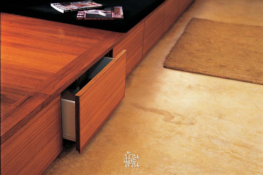 “เราเรียนจบคณะมัณฑนศิลป์จากศิลปากร แต่ด้วยความที่สนใจและถนัดกันคนละด้านจึงแบ่งหน้าที่กัน เหมือนแบ่งงานในออฟฟิศ เราเริ่มกำหนดโจทย์ด้วยข้อจำกัดของพื้นที่ พื้นที่ใช้สอย และงบประมาณที่เรามี โดยให้เพื่อนที่เป็นสถาปนิกมาช่วยออกแบบโครงสร้างให้ เพราะเป็นเรื่องที่ต้องอาศัยความชำนาญพิเศษ ไม่อยากเสี่ยงกับปัญหาที่จะตามมา หลังจากได้แบบที่พอใจ ก็เป็นหน้าที่ของเราทั้งสองที่จะแบ่งพื้นที่ใช้งาน กำหนดตำแหน่งแสงในห้องต่างๆ และเลือกของตกแต่งเป็นลำดับสุดท้าย โชคดีที่เราชอบความเรียบง่ายเหมือนกันเลยไม่ค่อยทะเลาะกันตอนออกแบบ”