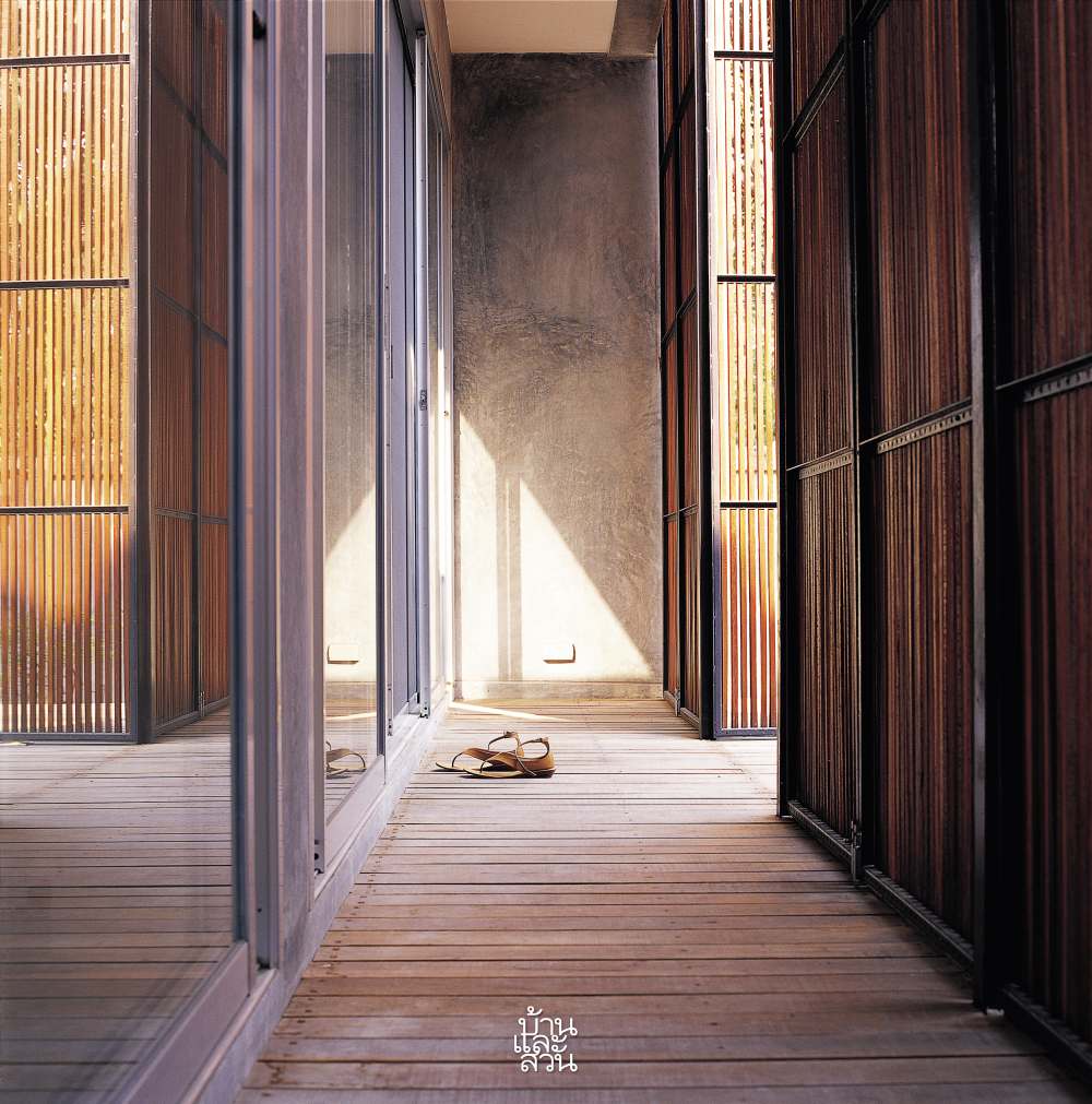 บ้านกล่อง โปร่งโล่ง โปร่งแสง ที่มีช่องหน้าต่างเปิดโล่งตลอดแนว และปิดด้านหน้าด้วยแผงไม้ซี่โปร่งๆหลังนี้ คงทำให้คนที่พบเห็นครั้งแรกอดสงสัยไม่ได้ว่าสร้างขึ้นให้เป็นอาคารประเภทใด