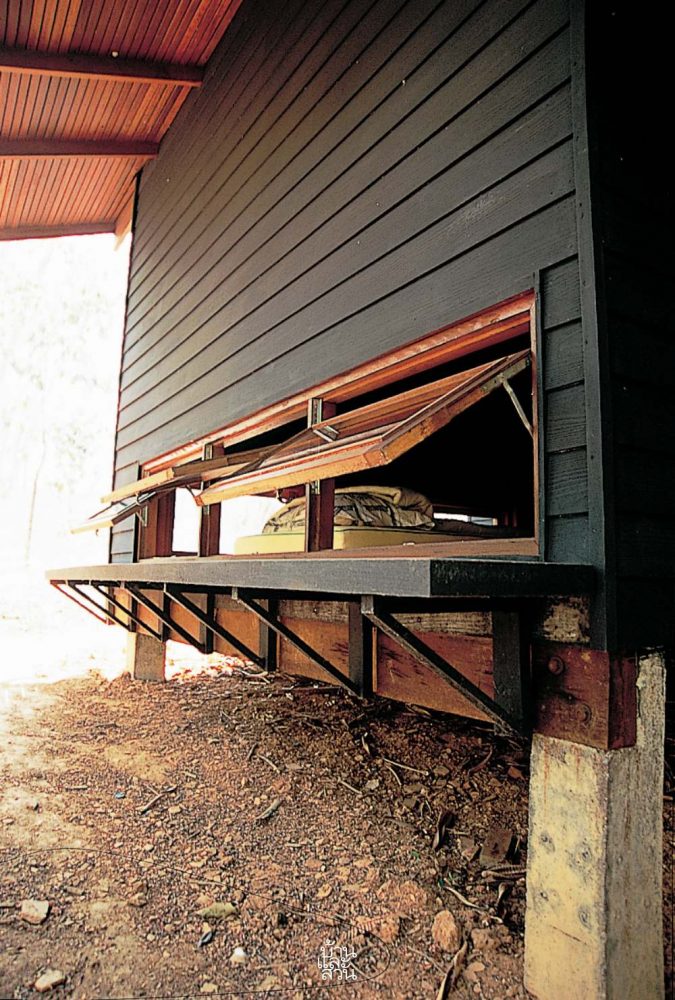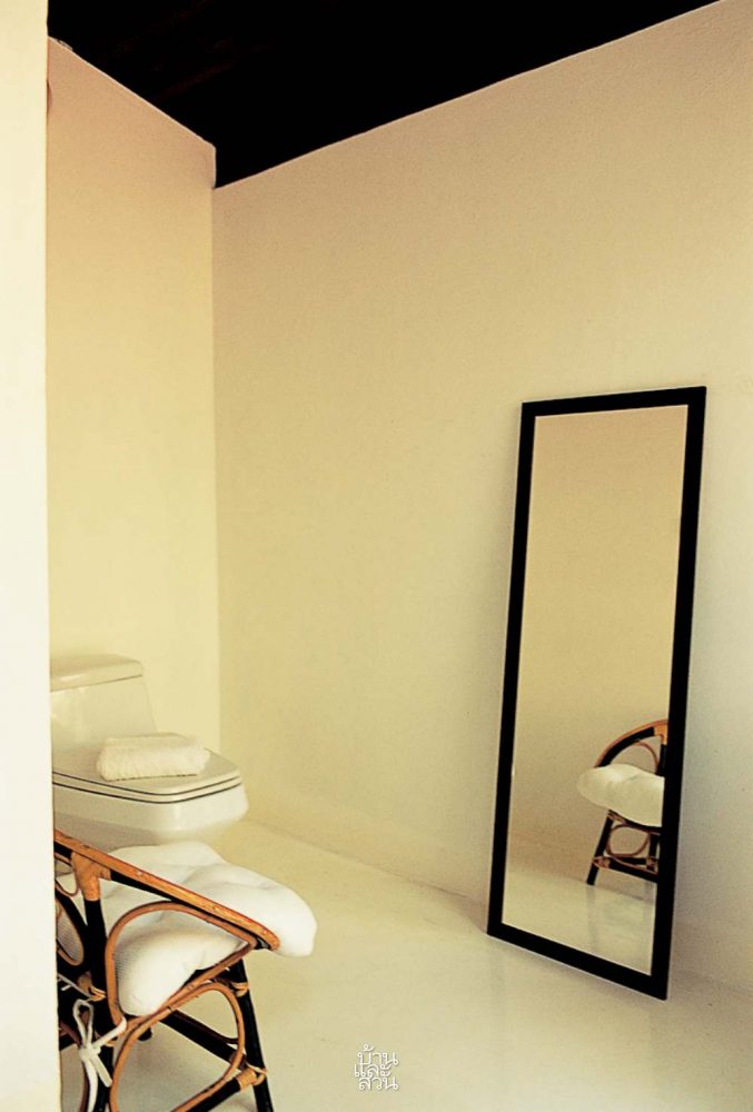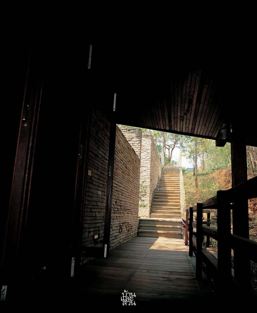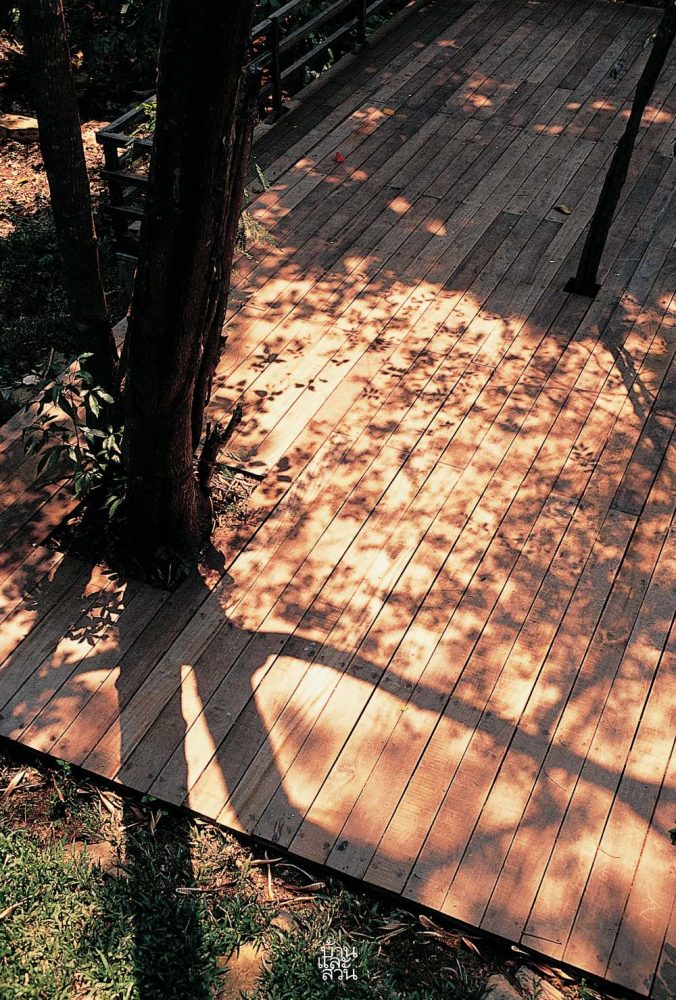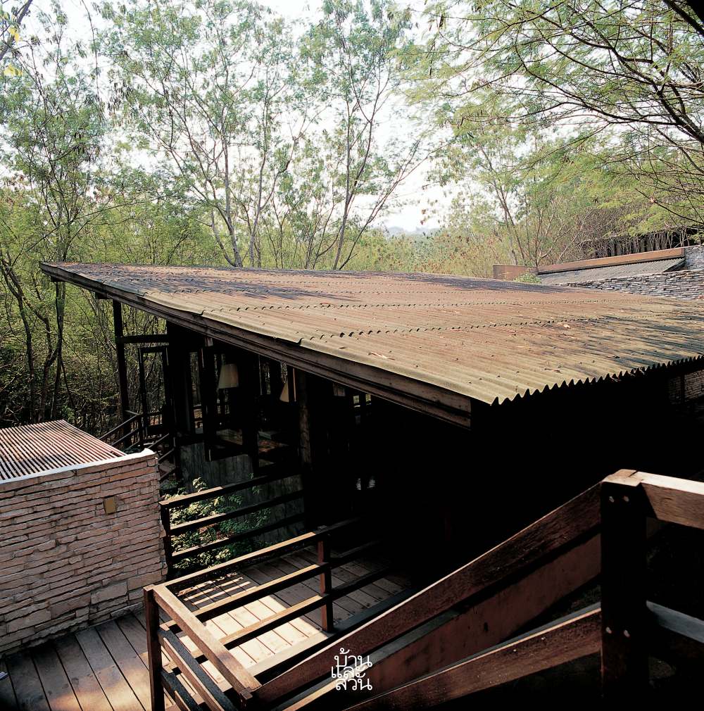 “ก่อนหน้านี้เราตระเวนหาที่ดินกว่า 30 แห่งทั่วประเทศ จนในที่สุดก็ตัดสินใจเลือกพื้นที่กลางหุบเขาแห่งนี้ เพราะชอบที่มีน้ำตกเล็กๆไหลผ่านกลางที่ดิน ซึ่งเป็นเขาเตี้ยๆที่ยังคงสภาพป่าที่สมบูรณ์อยู่ ช่วงแรกก็สร้างบ้านหลังเล็กๆ เพียงสองหลังไว้เป็นที่พักเท่านั้น แต่ในเวลาต่อมาได้ตัดสินใจต่อเติมเป็นหกหลัง เพื่อให้มีห้องพักเพียงพอสำหรับเพื่อนที่ชอบมาเที่ยวด้วยกันเสมอ รวมทั้งสร้างสตูดิโอสำหรับทำงานศิลปะในยามว่างอีกด้วย” บ้านไม้สไตล์ดิบๆ