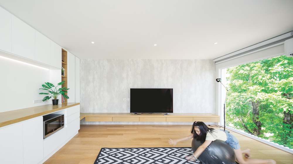 เมื่อว่าที่คุณพ่อคุณแม่คู่แต่งงานใหม่วางแผนเตรียมบ้านให้พร้อมสำหรับสมาชิกใหม่ตัวน้อย จึงต้องมีการเพิ่มพื้นที่ใช้สอยด้วยการต่อเติมกล่องขนาด 4 x 11เมตร ออกมาจากตัวบ้านเดิม แรกเริ่มก่อนก่อสร้าง ตั้งใจให้พื้นที่นี้เป็นพื้นที่นั่งเล่น และห้องเก็บของ เพื่อเติมเติมการใช้งานของบ้านหลัก ทีมสถาปนิกจาก Fatt! Studio ทำงานร่วมกับวิศวกรในการออกแบบเสาโครงสร้าง 4 ต้น เพื่อรองรับส่วนต่อเติมยาวกว่า 11 เมตร โดยมีโครงสร้างคานยื่นออกไปทั้งสองข้าง ซึ่งเป็นทางเดียวที่ทำให้พื้นที่ชั้นล่างกว้างขวางเหมาะสำหรับเป็นพื้นที่นั่งเล่นและทำกิจกรรมแบบกึ่งเอาต์ดอร์ ที่โปร่งสบายในลักษณะคล้ายใต้ถุนบ้าน นอกจากนี้ ยังออกแบบให้สะพานเชื่อมทางสัญจรกับตัวบ้านหลัก โดยไม่กระทบกับโครงสร้าง Precast เดิม ดังนั้น จึงเชื่อมต่อกับผนังเบาตามสันฐานเดิมของอาคาร >> อ่านต่อ