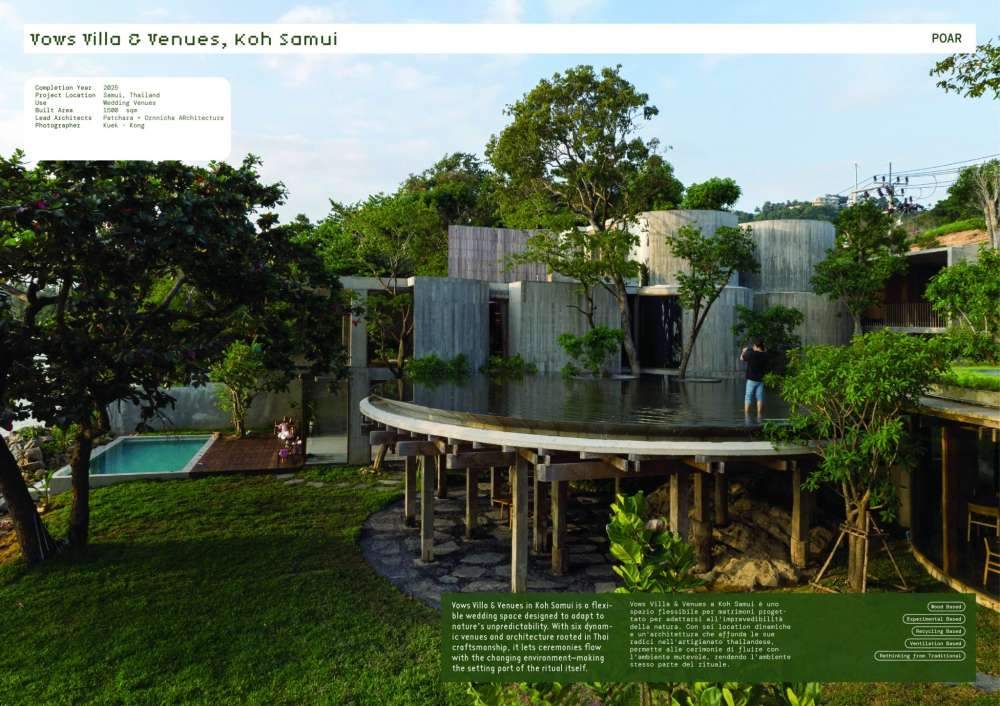 โดยงานสถาปัตยกรรมและการออกแบบของไทยเป็นการหลอมรวมวัฒนธรรม นิเวศวิทยา และนวัตกรรม เข้าด้วยกันอย่างซับซ้อน นิทรรศการนี้ ทั้งสถาปนิก นักออกแบบ ช่างฝีมือ นักสร้างสรรค์ นักการศึกษา และผู้เชี่ยวชาญในวิชาชีพที่เกี่ยวข้อง ได้นำเสนอแนวคิดทางสถาปัตยกรรมผ่านโครงการและกระบวนการออกแบบที่สะท้อน การฟื้นฟู การปรับตัว และความเคารพต่อสมดุลทางจิตวิญญาณและนิเวศวิทยา ผลงานเหล่านี้เผยให้เห็นว่าสถาปนิกไทยสามารถเปลี่ยนข้อจำกัด ไม่ว่าจะเป็นสภาพภูมิอากาศ วัสดุ หรือบริบททางวัฒนธรรม ให้กลายเป็นแรงผลักดันสู่สถาปัตยกรรมร่วมสมัย