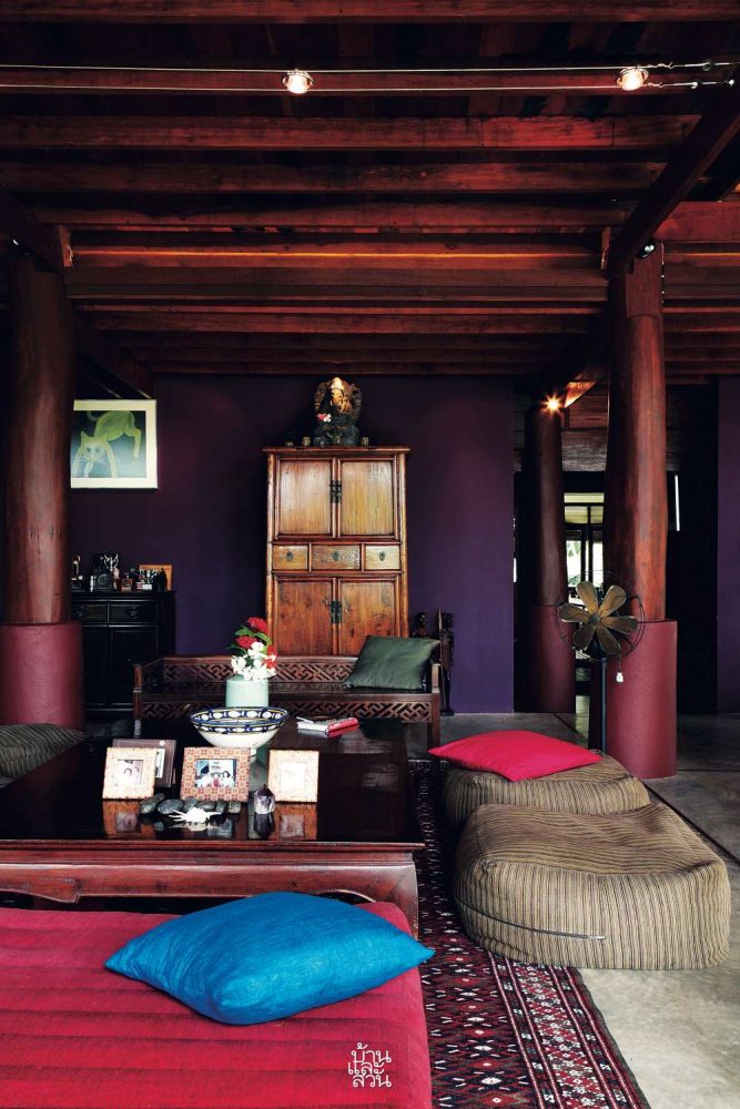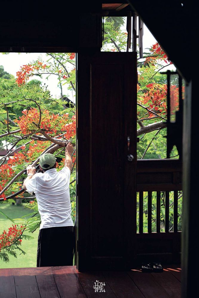 “มาเจอที่ดินผืนนี้แล้วชอบมาก เรามาดูตั้งแต่ที่ตรงนี้มีแค่ต้นตาล 3 ต้น พอมาสร้างบ้านจริง บริเวณนี้ก็ยังสงบเงียบเป็นส่วนตัว ไม่วุ่นวาย” คุณแกรี่เสริมว่า “ชอบอยู่บ้านไทย เพราะเป็นบ้านไม้เย็นสบาย รูปแบบก็สวยงาม ตัวบ้านด้านบนก็เปิดโล่ง ลมพัดผ่านได้ดี บ้านอีกหลังที่จังหวัดเชียงใหม่ก็ปลูกเป็นบ้านเรือนไทยเหมือนกัน”
