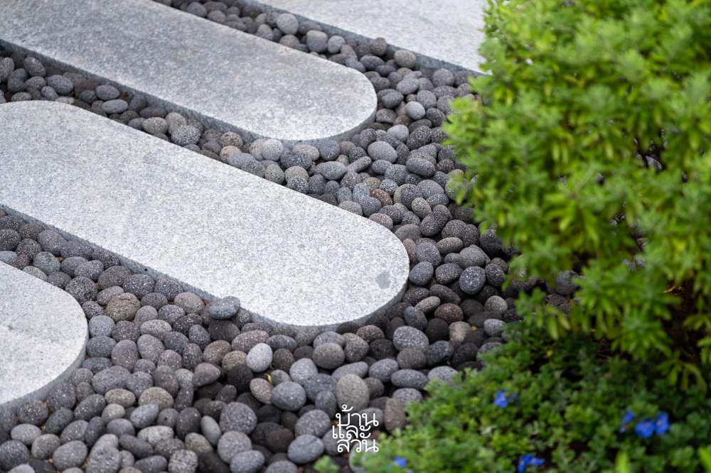 แผ่นหินแกรนิต และหินลาวาสโตน เป็นวัสดุตกแต่งสวนที่มีความทนทาน ทำให้บรรยากาศในสวนดูนุ่มนวล ไม่แข็งกระด้าง อีกทั้งขอบโค้งมนยังช่วยลดการเกิดอันตรายเวลามีเด็กหรือผู้สูงอายุใช้งาน