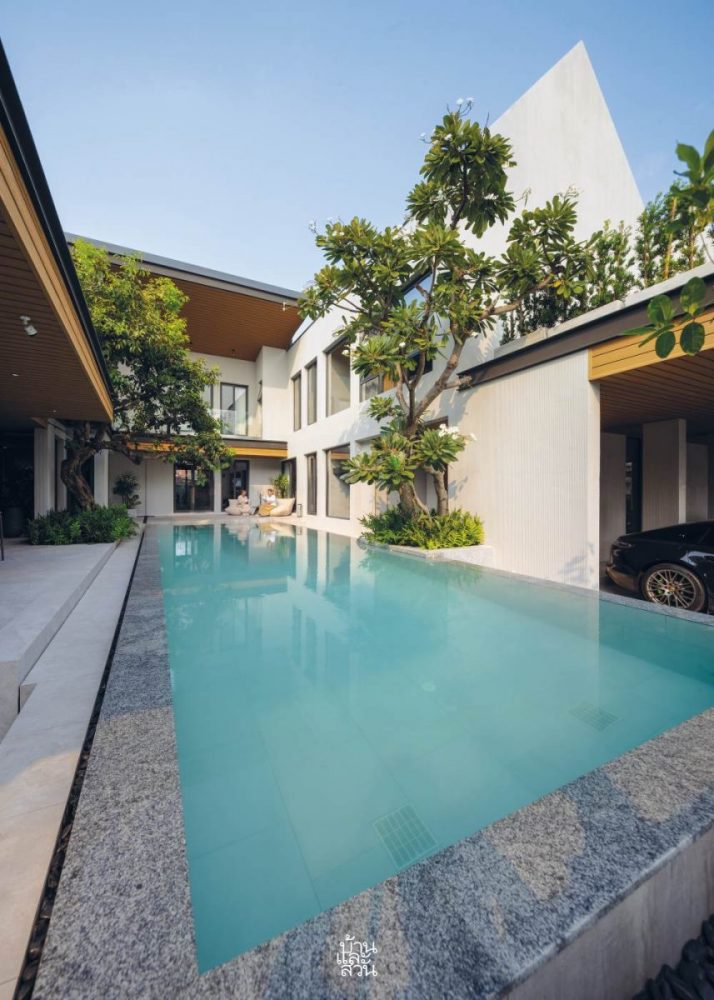 Luxury House Plan ของบ้านโมเดิร์นหลังนี้ออกแบบให้มีพื้นที่เปิดซึ่งสามารถสัมผัสธรรมชาติได้มากที่สุด มีต้นไม้แทรกแผ่ร่มเงาทั่วบริเวณ แม้จะอยู่กลางเมืองแต่ก็เงียบสงบ โดยสร้างให้อยู่ติดกับบ้านคุณพ่อคุณแม่ เพื่อให้สามารถดูแลทั้งสองท่านได้แม้จะแยกบ้านออกมา พร้อมทำสระว่ายน้ำและส่วนออกกำลังกายแยกจากตัวบ้าน เพื่อให้คุณพ่อคุณแม่และเครือญาติสามารถมาใช้ร่วมกันได้โดยไม่รบกวนความเป็นส่วนตัวภายในบ้าน >> อ่านต่อ