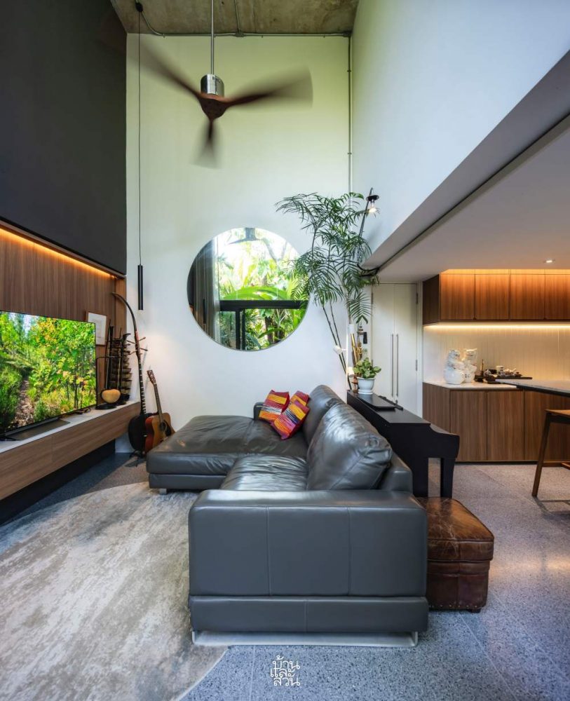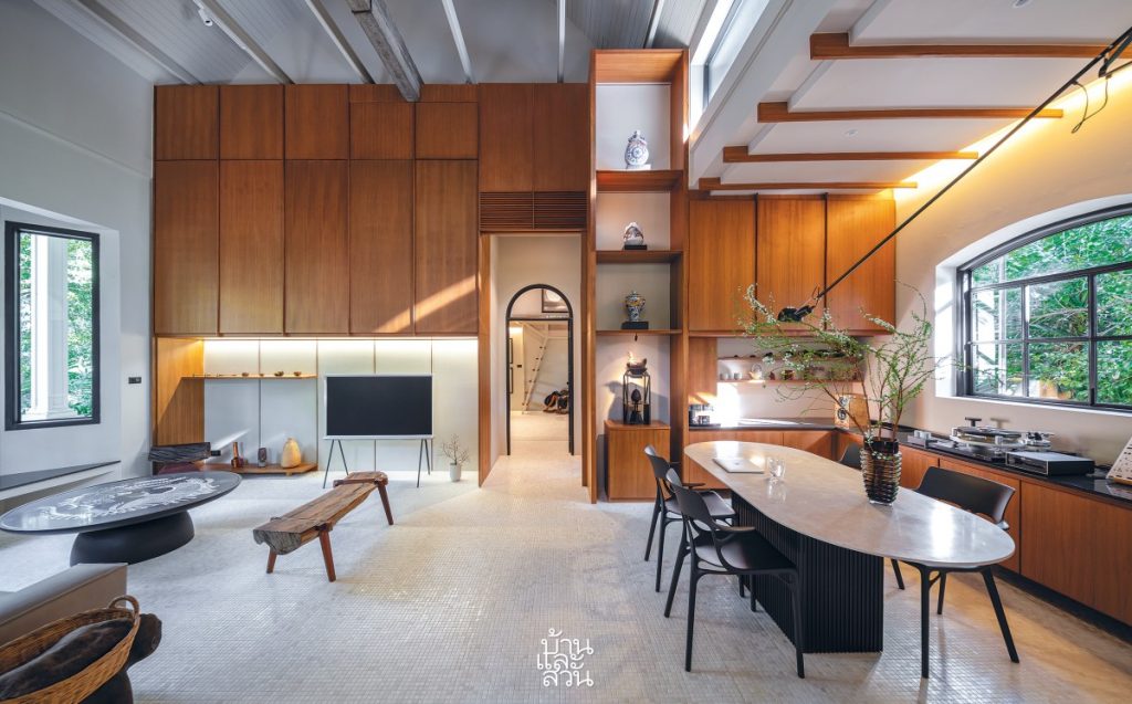 การรีโนเวตบ้านไทยประยุกต์หลังนี้เป็นการปรับปรุงบ้านสองหลังให้เชื่อมต่อกันเป็นหลังเดียว เพื่อให้เหมาะกับการใช้ชีวิตของครอบครัวและเป็นพื้นที่ทำงานศิลปะไปพร้อมกัน โดยผสานโครงสร้างเดิมเข้ากับการออกแบบที่ทันสมัย เน้นการใช้แสงธรรมชาติและสีสันที่สะท้อนตัวตนของเจ้าของบ้านได้อย่างลงตัว ทำให้บ้านหลังนี้กลายเป็นทั้งที่อยู่อาศัยและแกลเลอรีส่วนตัวไปในคราวเดียวกัน >> อ่านต่อ