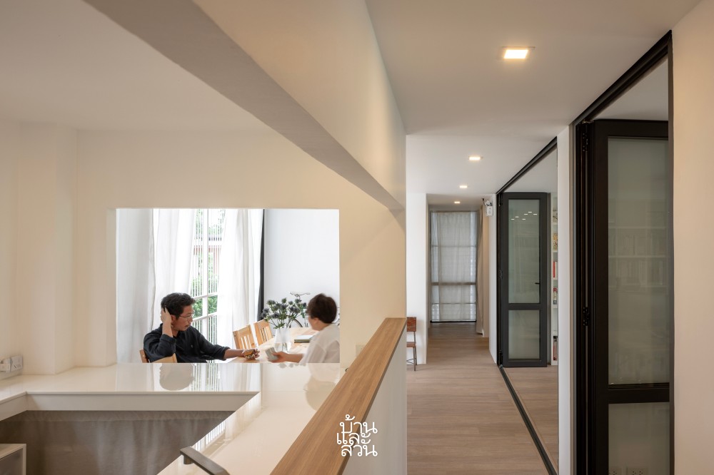 บ้านชั้นเดียวในจังหวัดขอนแก่นของ 2 สถาปนิก คุณกุ๊กไก่ – จันทนีย์ จิรัณธนัฐ อาจารย์ประจำคณะสถาปัตยกรรมศาสตร์ มหาวิทยาลัยขอนแก่น และคุณนัท – ณัฏฐ์ ละเอียดอ่อน สถาปนิก JOYS Architect ที่ออกแบบบ้านเอง ด้วยการนำพฤติกรรมการใช้งานของทั้งคู่มาเป็นโจทย์ จนออกมาเป็นบ้านที่ทั้งปลอดโปร่ง ไม่รก ยิ่งกว่านั้นคือการออกแบบให้หนังสือเป็นส่วนหนึ่งของบ้าน สามารถเข้าถึงหนังสือทุกเล่มที่ทั้งคู่เก็บสะสมได้ง่าย ตอบโจทย์ไลฟ์สไตล์ทั้งความเป็นสถาปนิกและนักอ่านได้เป็นอย่างดี >> อ่านเพิ่มเติมได้ในหนังสือ “Minimalist House for Tropical Living บ้านมินิมัล วิถีทรอปิคัล”