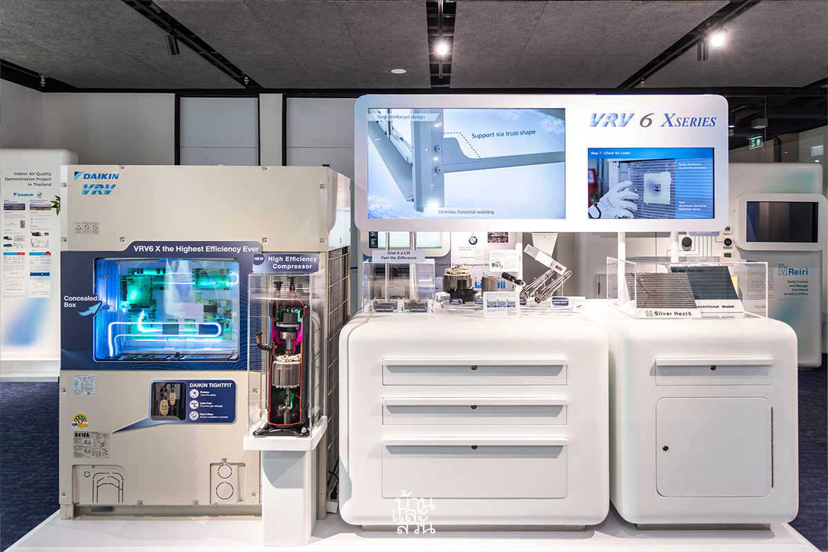 โซนที่ห้า CURRENT PRODUCTS AND SOLUTIONS ZONE “อากาศดี…ออกแบบได้” นำเสนอโซลูชันของเครื่องปรับอากาศและระบบอากาศของ DAIKIN ที่สามารถตอบสนองความต้องการผู้ใช้งานได้ในทุกกลุ่ม เพื่อให้ทุกความต้องการเป็นไปได้จริง ไม่ว่าจะเป็นเครื่องปรับอากาศเพื่อสร้างอากาศเย็นสบายที่บ้าน ระบบปรับอากาศเพื่อของโรงแรมขนาดใหญ่ หรือระบบปรับอากาศสำหรับสายการผลิตขนาดใหญ่ ฯลฯ