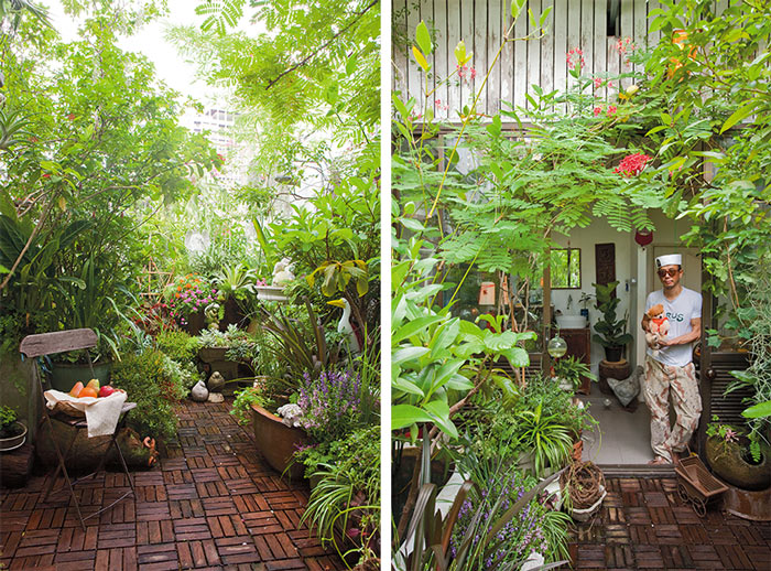 วันนี้ my home ชวนไปดู สวนระเบียง ที่ตั้งอยู่บนระเบียงดาดฟ้าชั้น 3 ที่ซ่อนตัวอยู่ในซอยสุขุมวิท 16 ซึ่งเคยเป็นสวนอาบน้ำกลางแจ้งของ คุณแม็ค – ฐานวัฒน์ สุวินัย พฤษเบ็ญจะ ที่เชื่อมต่อห้องนอน ห้องทำงาน และสวนบนระเบียงไว้ด้วยกัน ในบรรยากาศที่สุนทรีย์ ชวนให้เคลิบเคลิ้มไปกับธรรมชาติอย่างอิ่มอกอิ่มใจ