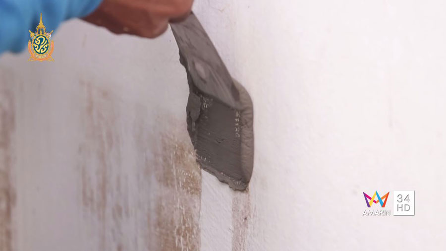 ขั้นตอนที่2 เมื่อพบรอยแตกร้าวให้ใช้ปูนฉาบSkim Coatอุดรอยรั่วเหล่านั้นหากเป็นรอยบิ่นตามขอบของผนังให้เปลี่ยนไปใช้Acrylic Patchในการพอกขอบให้สมบูรณ์ดั้งเดิมทั้ง Skim Coat และAcrylic Patch มีความสามารถที่ดีในการยึดเกาะกับปูนเดิมและมีความยืดหยุ่นไม่แตกร่วนเมื่อเวลาผ่านไปทั้งยังไม่หดตัวหลังทาสีทับให้เห็นเป็นรอยแตกอีกด้วย