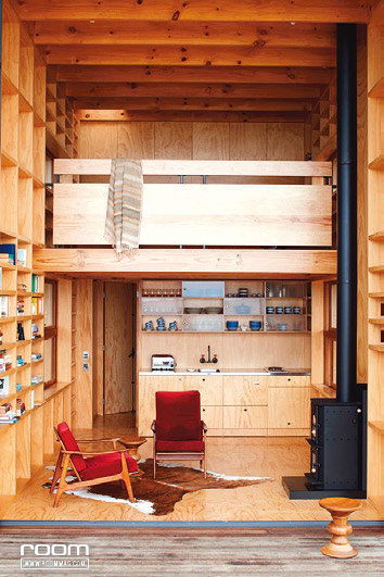 กระท่อมโลดแล่น รักษ์สิ่งแวดล้อม “The Hut on Sleds” เป็นบ้านกล่องสไตล์โมเดิร์นสุดล้ำที่ไม่ได้มีดีแค่ขนาดพื้นที่ใช้สอยที่กะทัดรัด แต่ยังเคลื่อนที่ได้ เพราะสร้างบนโครงสร้างคานไม้ขนาดใหญ่ลักษณะคล้ายบ้านลากเลื่อน แถมยังมีระบบกักเก็บน้ำฝนไว้ใช้ในบ้าน ออกแบบโดย Crosson Clarke Carnachen Architects กลุ่ม สถาปนิกชาวนิวซีแลนด์ เพื่อแก้ปัญหาบ้านที่มักได้รับความเสียหายจากการกัดเซาะอย่างรุนแรงตามชายฝั่งทะเล
