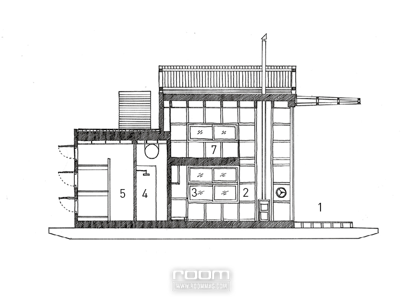 บ้านนี้มีความกว้างเพียง 3.30 เมตร แต่มีความยาวซึ่งรวมอาคารส่วนห้องนอนเด็กและห้องน้ำด้านหลังทั้งหมด 7 เมตร อาจเพราะต้องเคลื่อนที่ได้สถาปนิกจึงเพิ่มลูกเล่นให้บ้านมีรูปทรงแคบและยาว เพื่อให้ดูไม่อึดอัดจนเกินไป และเนื่องจากบ้านค่อนข้างแคบ จึงใช้บันไดลิงเพื่อขึ้นสู่ชั้นลอย เป็นการประหยัดพื้นที่ ซึ่งการใช้งานอาจยากสักนิด ไม่เหมาะกับบ้านที่มีเด็กและผู้สูงอายุ