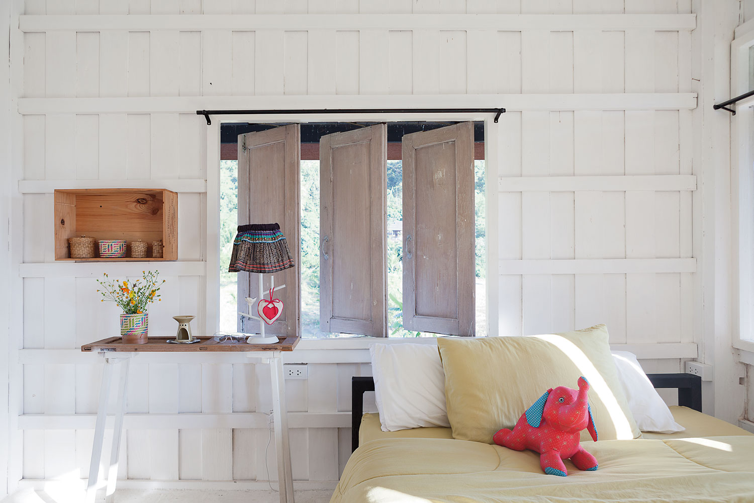 ดูเหมือนสายสัมพันธ์ของการใช้ชีวิตในสังคมใหญ่จะค่อยๆจางหายไปนานแค่ไหนแล้วที่เราแทบไม่ได้นึกถึง“เพื่อนบ้าน” ทั้งที่พวกเขาอยู่ใกล้เราแค่เอื้อม แต่กลับมีรั้วคอนกรีตสูงบ่งบอกอาณาเขตของกันและกันแทน ต่างจากบ้านน้อยสองหลังนี้ที่อยู่เรียงเคียงกัน เพราะเห็นความสำคัญของคำว่า“เพื่อน” อีกทั้งทิวทัศน์ของทุ่งนากว้างใหญ่เบื้องหน้า และภูเขาสูงสง่าของดอยหลวงเชียงดาวซึ่งตั้งรับกับปุยเมฆที่เคลื่อนตัวผ่านไปอย่างช้าๆ ก็เป็นเหตุผลให้ คุณแดง-อัจฉรา บุนนาค และคุณฟ้าใส วิเศษกุล สองเพื่อนสาวต่างวัยเลือกมาสร้าง บ้านหลังเล็ก ใกล้กันบนดินแดนแสนงดงามแห่งนี้
