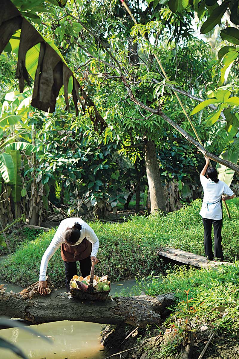 “จุดประสงค์ของการปลูกต้นไม้ในรีสอร์ตนี้นอกจากเพื่อความสวยงามและร่มรื่นแล้ว เรายังต้องการสร้างองค์ความรู้ด้วย แขกผู้เข้าพักจะได้รับรู้เรื่องราวเกี่ยวกับพรรณไม้ต่างๆ รวมถึงได้ลิ้มรสผลไม้ที่ปลูกในสวน มีทั้งมะพร้าว ชมพู่ม่าเหมี่ยว และลูกจาก เหมือนเป็นการจำลองการอยู่อาศัยแบบไทยๆให้เขาได้สัมผัส”