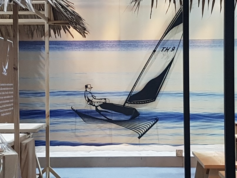 Room Beach Bar เป็นคาเฟ่ในธีม หัวหิน ทะเล เรือใบ บริเวณนี้จำลองบรรยากาศให้เหมือนกับอยู่ชายหาดส่วนตัวอย่าง ริมทะเลหัวหิน ซึ่งเป็นสถานที่ๆ ในหลวงทรงโปรด และเพื่อเป็นการน้อมรำลึกถึงในหลวง ทางนิตยสารรูมได้จัดทำ เหล็ก Laser ฉลุลาย ที่แสดงถึงพระอัจฉริยะภาพทางด้านกีฬาเรือใบ นอกจากนี้ยังสามารถอิ่มอร่อยกับ “ซีฟู้ดบาร์” เมนูซีฟู้ดระดับพรีเมียม พร้อมเครื่องดื่มเคล้าเสียงดนตรีสด นอกจากนี้ยังมีสินค้าไลฟ์สไตล์จากหลากหลายแบรนด์สุดชิคมาให้เลือกช็อปกันแบบเพลิน ๆ