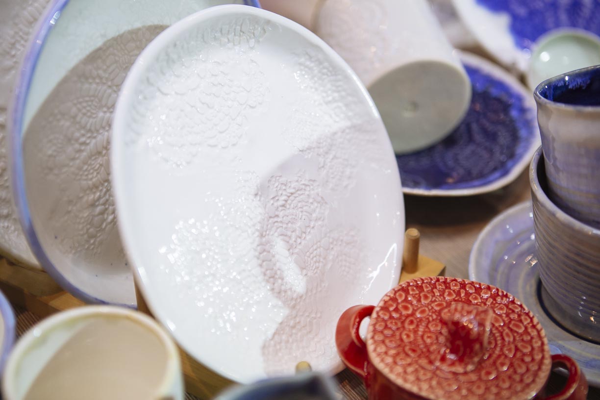 ถ้วย ชาม จานสวย กับลวดลายลูกไม้ซึ่งเป็นเทคนิคเฉพาะ ของ ละมุนละไม