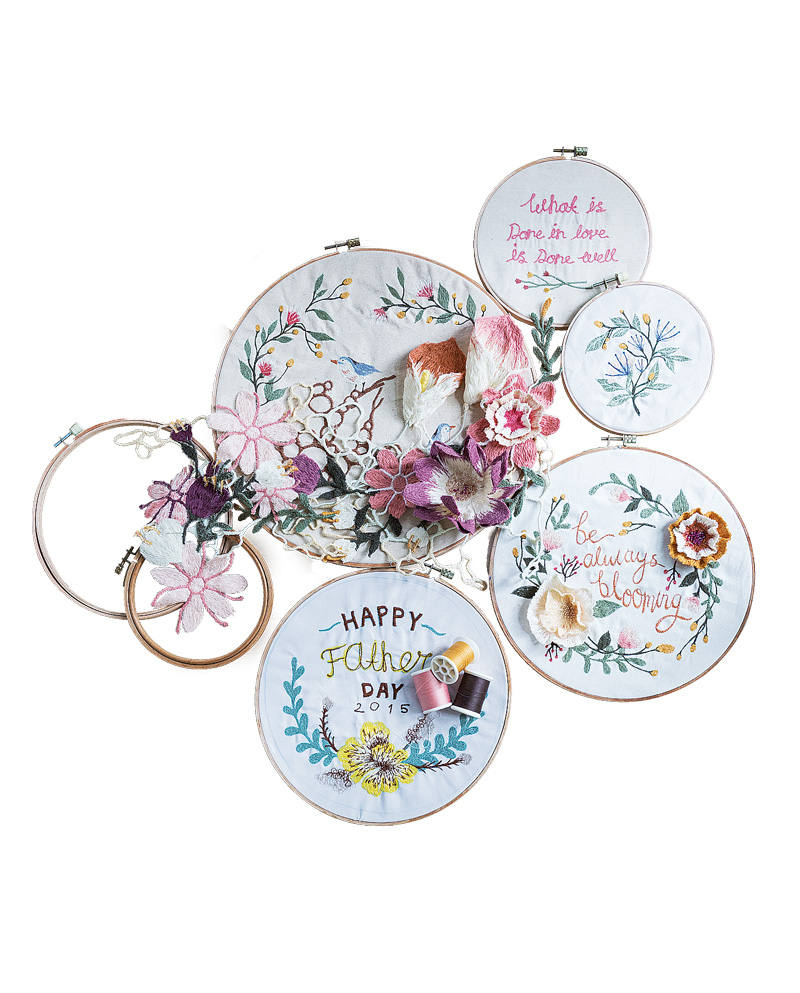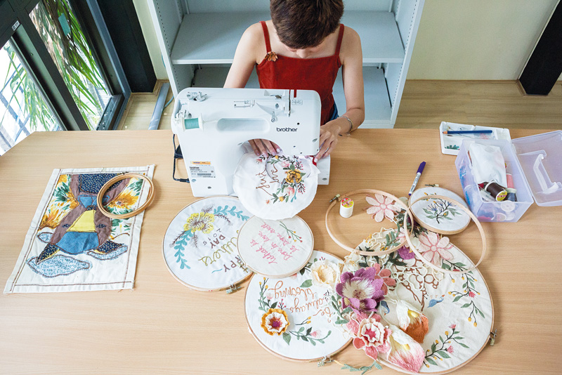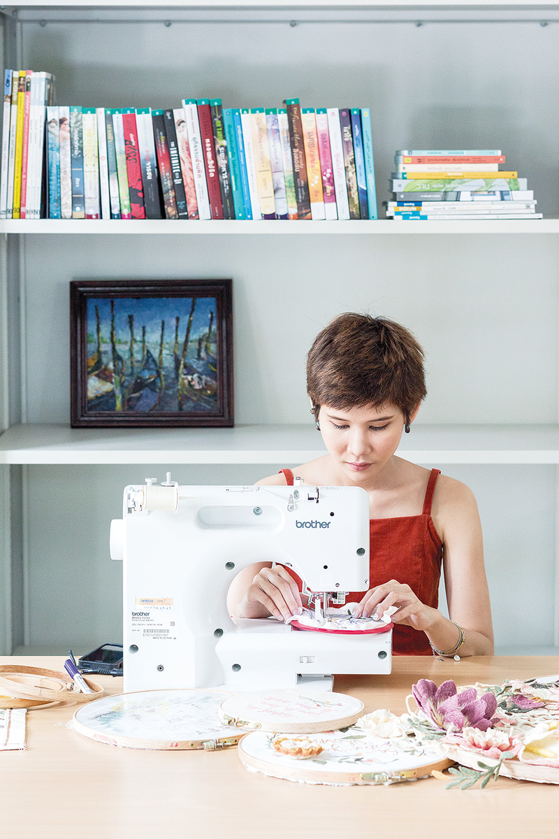 “พลอยชอบงานแฮนด์เมดมากนะ รู้สึกว่าเป็นงานศิลปะที่มีคุณค่า เวลาได้ทำแล้วมอบให้ใครก็รู้สึกดีด้วย คนรับก็มีความสุขเช่นกัน ต่อไปพลอยอยากลองทำงานปักดอกไม้เป็นเครื่องประดับชิ้นเล็กๆ ดูบ้าง และอยากเปิดร้าน ทำเวิร์คชอปให้คนที่สนใจด้วยในอนาคต แต่ตอนนี้ก็อาศัยเก็บประสบการณ์ ศึกษาเทคนิคใหม่ๆ สังเกตธรรมชาติ สีสัน รายละเอียด และองค์ประกอบต่างๆ แต่ไม่ว่าจะไปทดลองทำอะไร ทุกอย่างก็จะวกกลับเข้ามาสู่เรื่องราวที่เรารักและหลงใหลเสมอ ซึ่งเราก็จะทำได้ดีด้วย เหมือนประโยคที่พลอยเลือกปักไปบนผ้าว่า ‘What is done in love is done well’ ค่ะ”