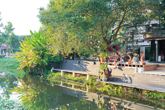 “ตอนอยู่กรุงเทพฯเราใช้เวลาหมดไปกับการเดินทางและการทำงาน จนวันหนึ่งมานั่งคิดว่าชีวิตมีแค่นี้เหรอ นานๆทีจะได้กลับไปนอนบ้าน มีสนามหญ้าแต่ไม่เคยลงไปเดินเล่น เลี้ยงสุนัขไว้แต่ก็แทบจำหน้ากันไม่ได้แล้ว ก็เลยฝันถึง บ้านปูน บนเขาและการเปลี่ยนชีวิตไปเป็นชาวไร่ทางภาคเหนือ ตัดสินใจออกเดินทางตามเพื่อนขึ้นเหนือไปซื้อไร่ ช่วงแรกก็ไปๆกลับๆกรุงเทพฯ-เชียงใหม่ตลอด ชอบตอนที่ขับรถทางไกล รู้สึกสงบและมีเวลาอยู่กับตัวเอง จนได้มาพบหมู่บ้านเก่าตรงนี้อายุประมาณสามสิบปีแล้ว ชอบตรงที่เขาทำคลองไว้รอบหลังบ้าน ทั้งยังมีต้นกระท้อนและหว้าที่ใหญ่มากๆ คิดว่าถ้าปลูกเองคงไม่มีวาสนาได้ทันเห็นต้นเติบใหญ่ขนาดนี้แน่ ก็เลยซื้อที่ผืนนี้ขนาด 135 ตารางวาเพื่อปลูกบ้านของตัวเอง”