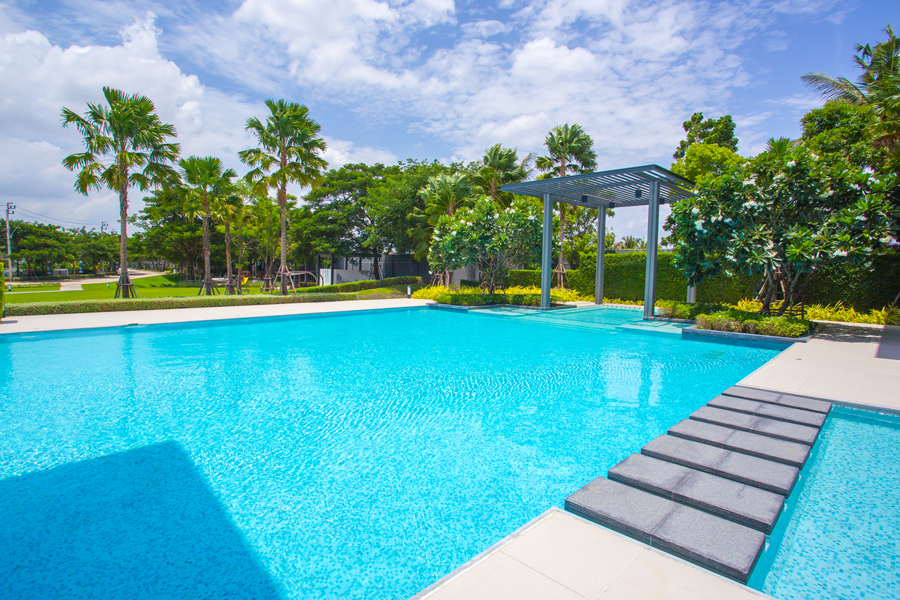 เมื่อมองจาก Living Room จะเห็นน้ำตกไหลจากชั้นสองสู่สระว่ายน้ำด้านล่าง ซึ่งสระว่ายน้ำสีฟ้าใสขนาดใหญ่นี้เป็นไฮท์ไลท์เด็ดของ The Grand Clubhouse โดยสระว่ายน้ำของที่นี่ไม่ได้มีดีแค่ดีไซน์เท่านั้น แต่ยังเป็นสระว่ายน้ำระบบเกลือที่ส่งผลดีต่อสุขภาพมากกว่าสระว่ายน้ำทั่วไป อีกทั้งสระว่ายน้ำของโครงการชัยพฤกษ์ ปิ่นเกล้า-กาญจนาฯ ยังควบคุมค่า PH หรือคุณภาพน้ำให้คงที่อยู่เสมอ พร้อมมี Jacuzzi ให้เราคลายเครียดได้อีกด้วยนอกจากนี้ The Grand Clubhouse ยังแยกสระเด็กและสระผู้ใหญ่ คุณจึงมั่นใจในเรื่องของความปลอดภัยได้อย่างหมดห่วง