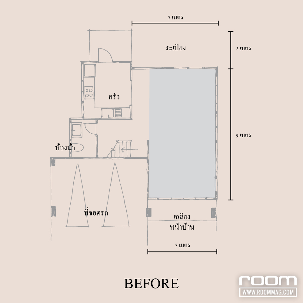 BEFORE : พื้นที่ว่างนอกบ้าน เพิ่มโครงสร้างใหม่กลายเป็นอาคารสำนักงานขนาดย่อม