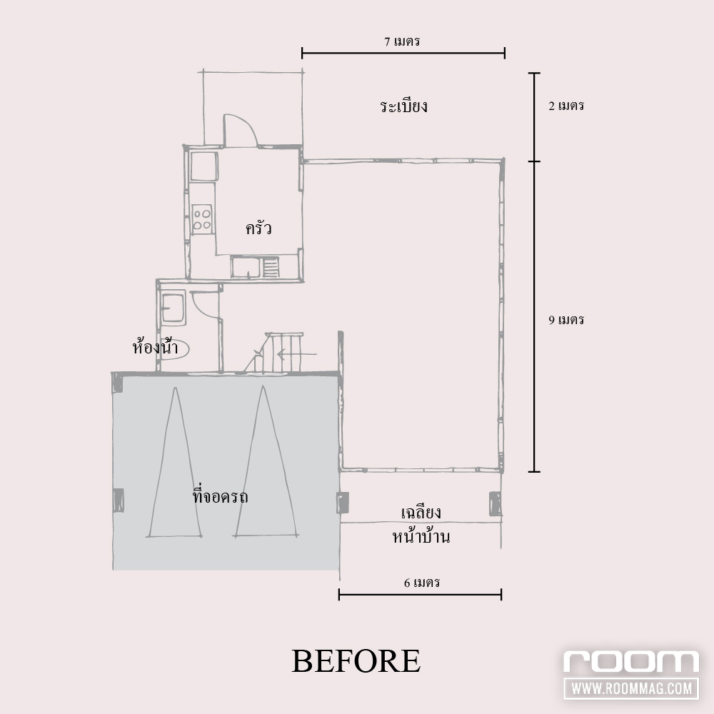 BEFORE : กั้นบริเวณโรงรถให้กลายเป็นออฟฟิศหน้าบ้าน