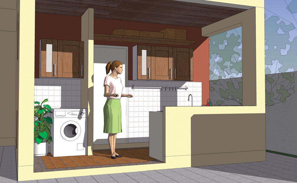 C. ส่วนใช้งานหลังบ้าน ครัวไทย+ลานซักล้างที่โปร่งโล่ง
