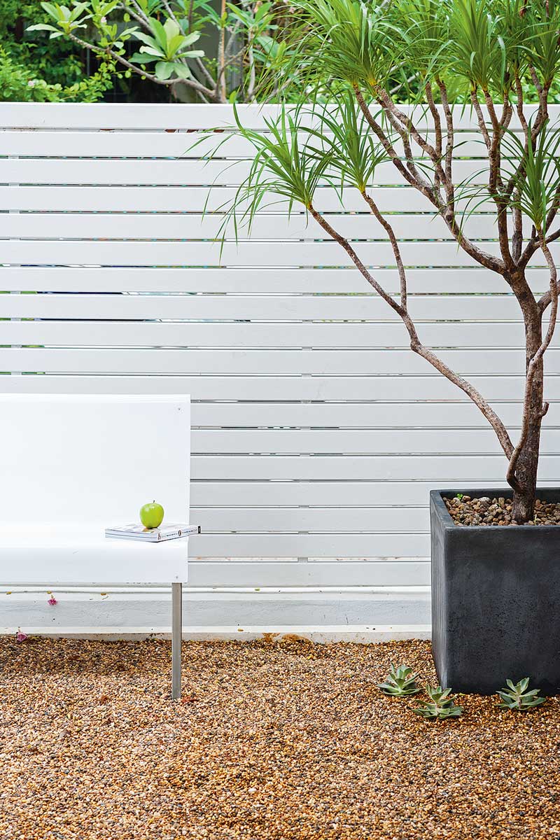 เลือกใช้ไม้ฟอร์มสวยขนาดไม่ใหญ่นักปลูกสร้างจุดเด่น จะปลูกต้นเดียวไปเลยหรือปลูกจัดกลุ่มโดยเลือกใช้ขนาดและรูปทรงต่างกัน จัดองค์ประกอบเหมือนเป็นประติมากรรมวางเป็นกลุ่ม โดยเลือกใช้ไม้รูปทรงเท่ ๆ ที่เห็นโครงร่างชัดเจนสำหรับสวนที่ต้องการความเรียบเท่ แต่ถ้าต้องการอารมณ์หวาน ๆ หน่อยก็ปลูกให้มีเส้นสายอ่อนช้อยขึ้นมาหรือปลูกร่วมกับพรรณไม้ชนิดอื่น ๆ เสริมก็ได้
