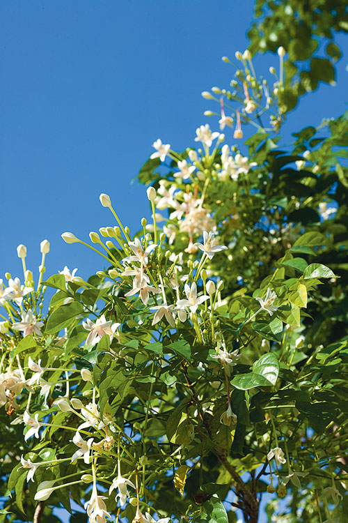 6. แม้ว่าปีบจะออกดอกได้เกือบตลอดทั้งปี แต่ในฤดูฝนโดยเฉพาะช่วงเดือนกันยายนเป็นต้นไป เราจะเห็นไม้ชนิดนี้ออกดอกมากเป็นพิเศษ ปีบเป็นไม้ต้นผลัดใบขนาดเล็กถึงขนาดใหญ่ สูง 5-25 เมตร ดอกสีขาวทยอยบานตั้งแต่ตอนเย็นถึงกลางคืนส่งกลิ่นหอม แต่มีข้อเสียคือกิ่งเปราะ ใบและดอกร่วงทุกวันจึงอาจไม่เหมาะสำหรับผู้ที่ไม่นิยมกวาดใบไม้ตลอด