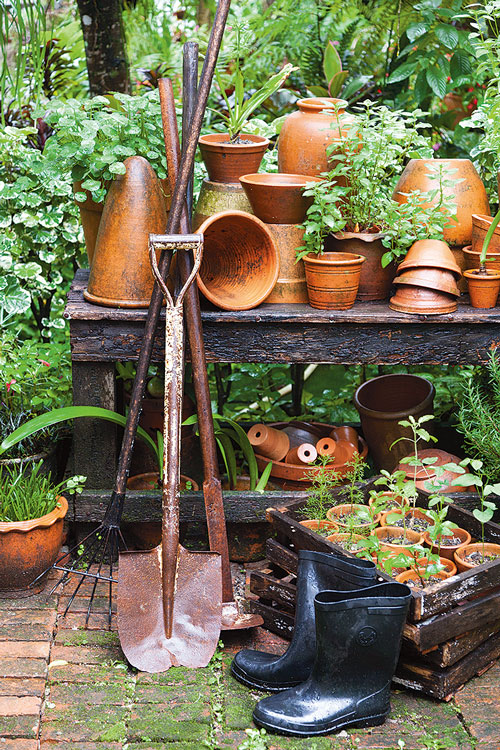 5. ในมุมสวนใกล้โรงเรือนถือโอกาสขยายพันธุ์ต้นไม้หรือเพาะกล้าไปด้วยเพื่อนำไปปลูกตกแต่งตามจุดต่าง ๆ สำหรับสวนครัวนอกจากพืชผักล้มลุกทั่วไปที่ปลูกได้ตลอดทั้งปี ผักพื้นบ้านส่วนใหญ่ก็จะงามพร้อมให้เก็บมารับประทานในช่วงนี้เช่นกัน ทั้งผักปลัง ดอกขจร ตำลึง ผักกูด โสน ขี้เหล็ก และพืชตระกูลขิงข่า